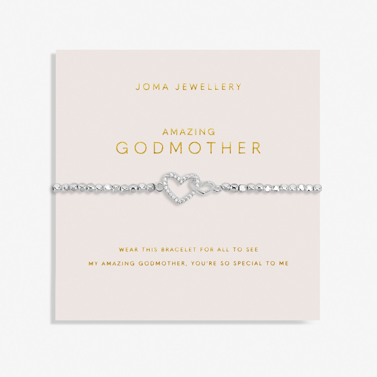 Symbolising the unbreakable bond you share with loved ones, our ever-growing Forever Yours Collection has been made to be gifted and treasured for a lifetime. Featuring a shining silver-plated hammered bead design, paired with a blush pink sentiment-stamped card, the Forever Yours 'Amazing Godmother' Bracelet In Silver Plating comes complete with one of our signature interlocked charms - two beautiful hearts representing godmother and godchild.