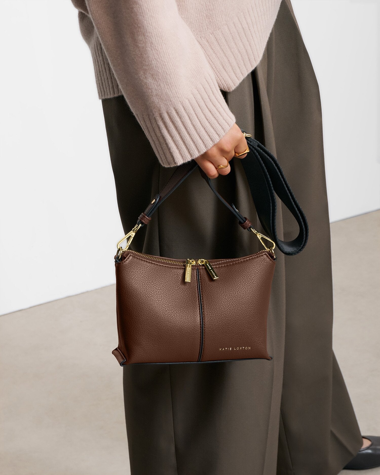 Introducing our Laila Crossbody Bag in Dark Chocolate, where modern design meets classic elegance. This bag features an adjustable canvas strap with a tapered design, ensuring a custom fit that makes it the ideal companion for both day and night. The double zip top closure reveals a spacious interior, enhanced by an internal zip pocket for effortless organisation of your essentials. For a perfectly coordinated look, pair it with the rest of our Laila Collection.