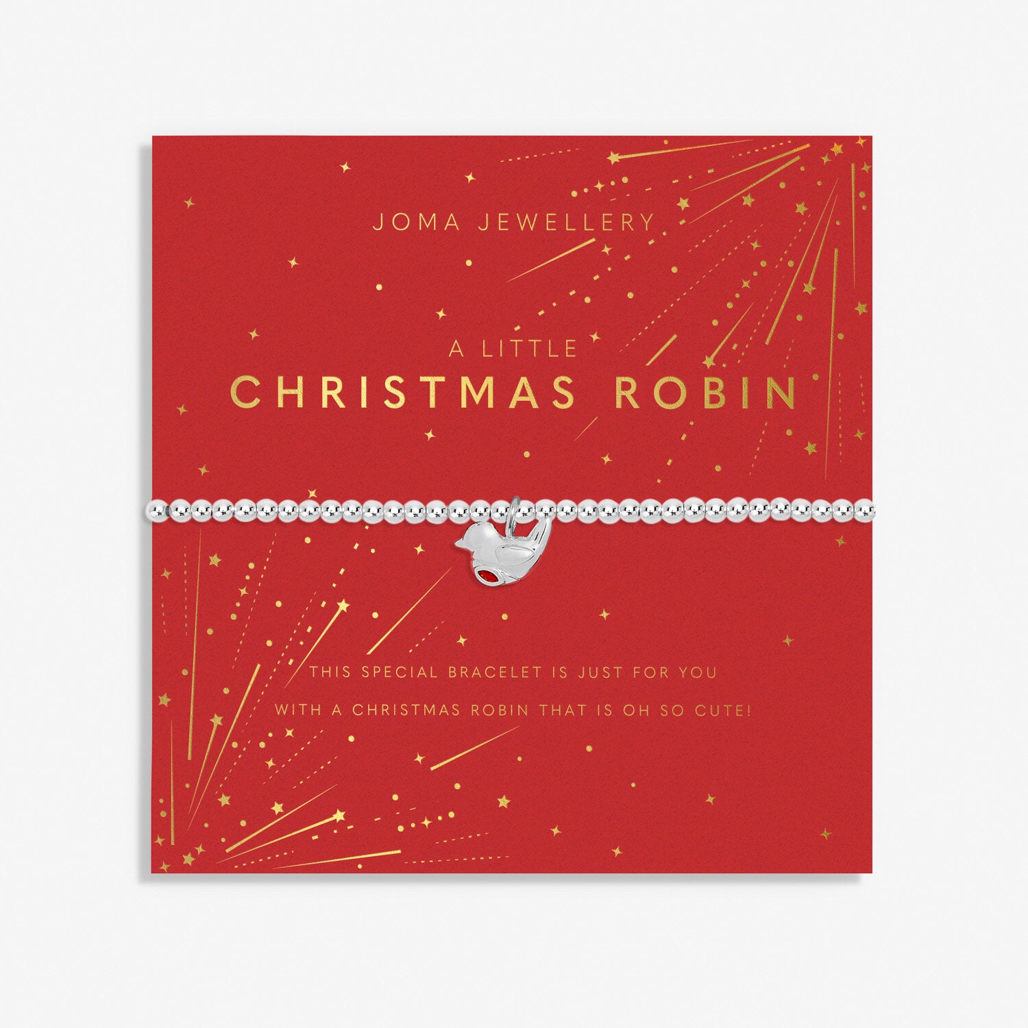 Kids Christmas A Little 'Christmas Robin' Bracelet In Silver Plating