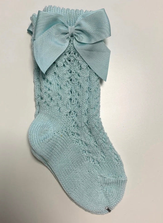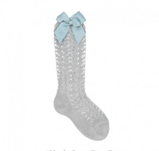 Condor Perle Open Work Knee Socks - Baby Blue 410