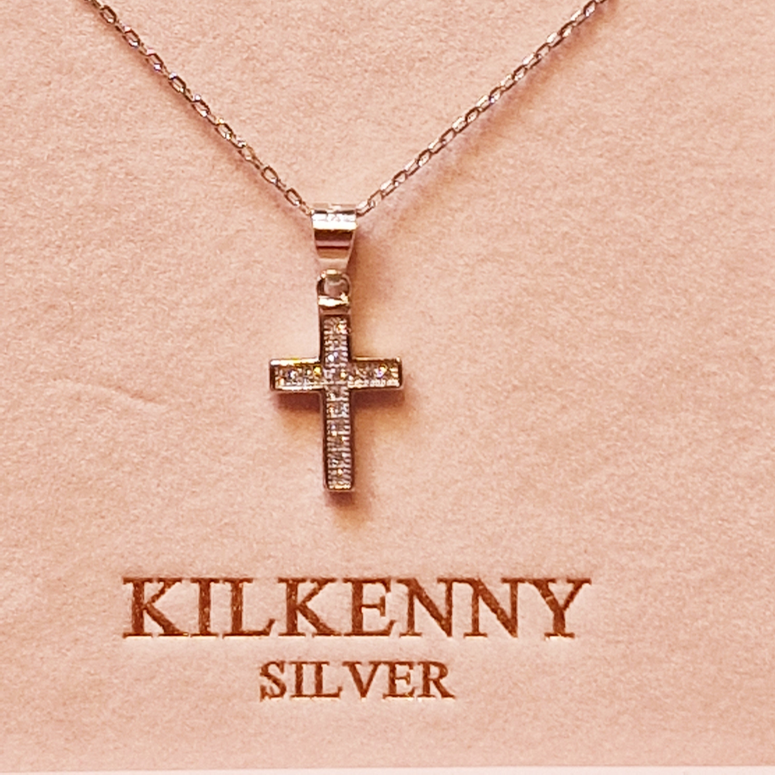 Block Cross Necklace with small stones – Silver L3209