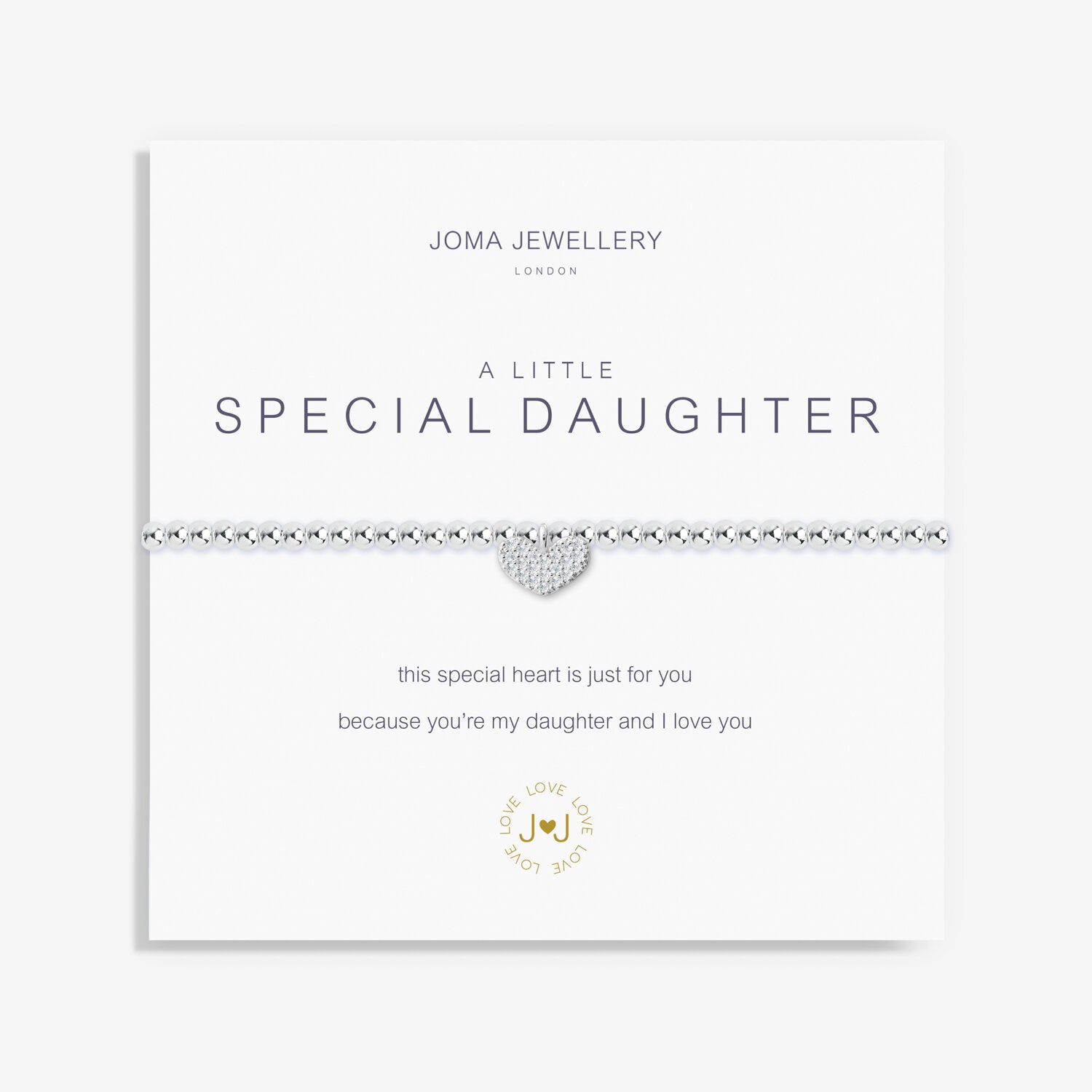“This special heart is just for you because you’re my daughter and I love you” There’s so many reasons to celebrate your daughter, and our A Little ‘Special Daughter’ Bracelet is the perfect way to do just that! A shimmering pave heart-shaped charm sits pretty on our iconic silver-plated stretch bracelet that is designed to give the perfect fit for every wrist. Presented on a card that is stamped with the sweetest poem and sentiment, this piece comes with one of our free Personalised Gift Bags that is sure to create the perfect gifting moment.