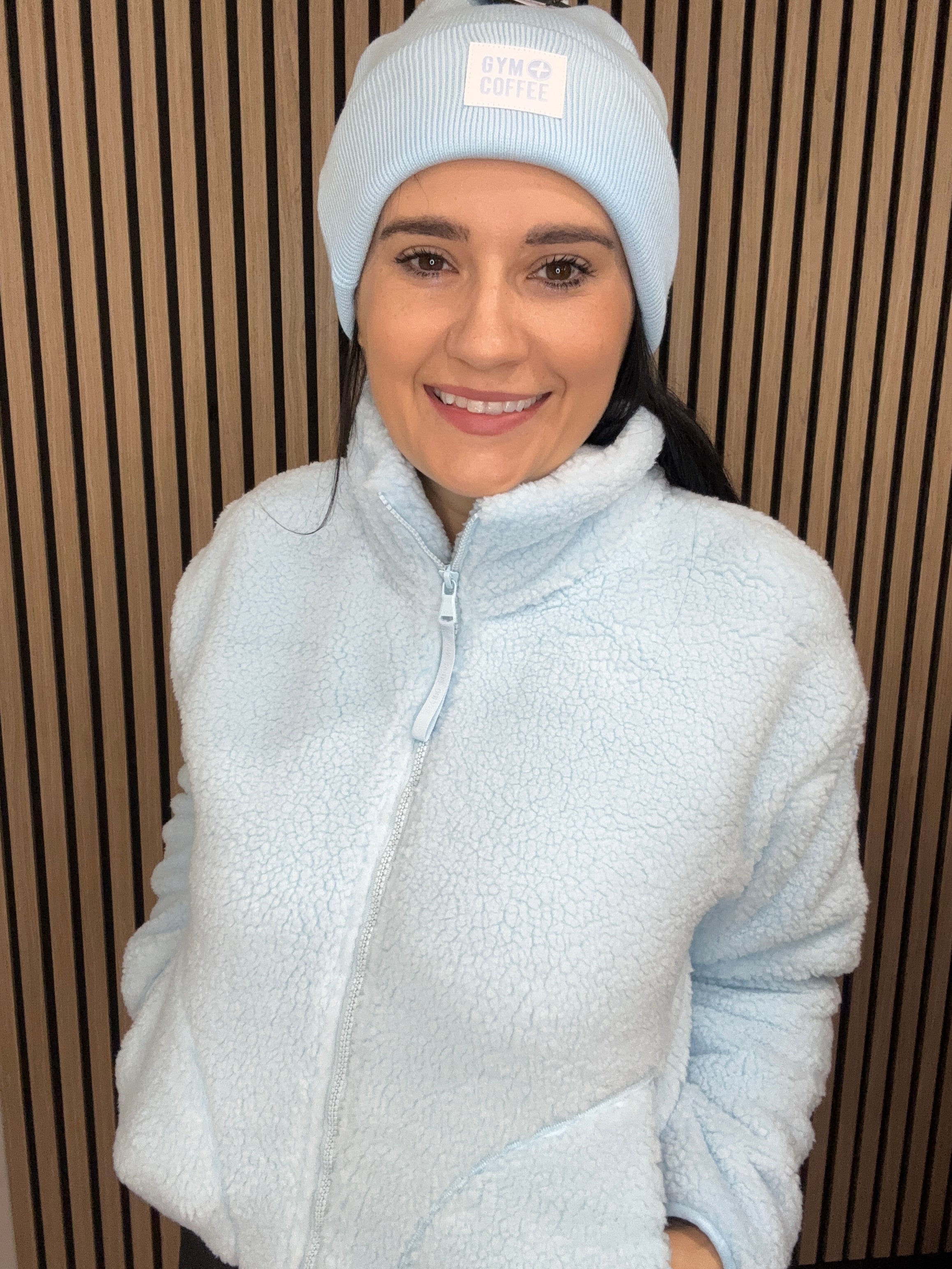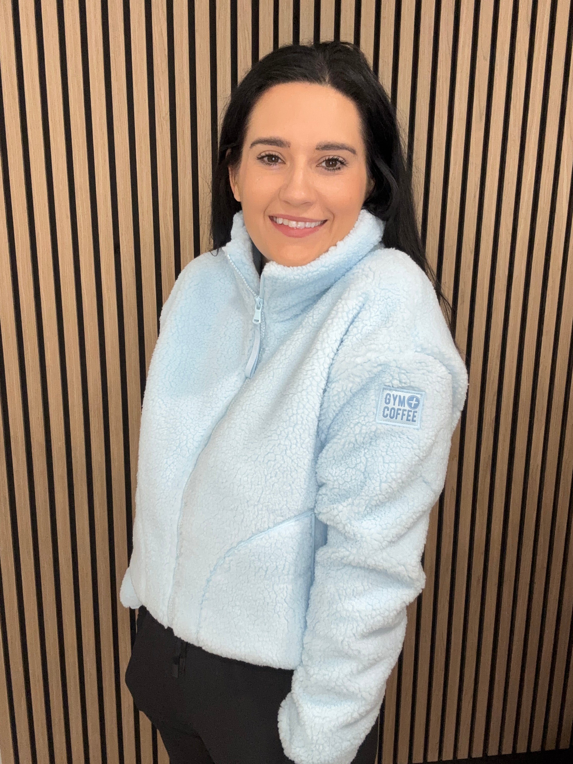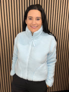 Industry High Collar Fleece Jacket in Baby Blue