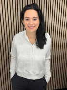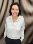 Sierra Half Zip Crop Hoodie in White Marl