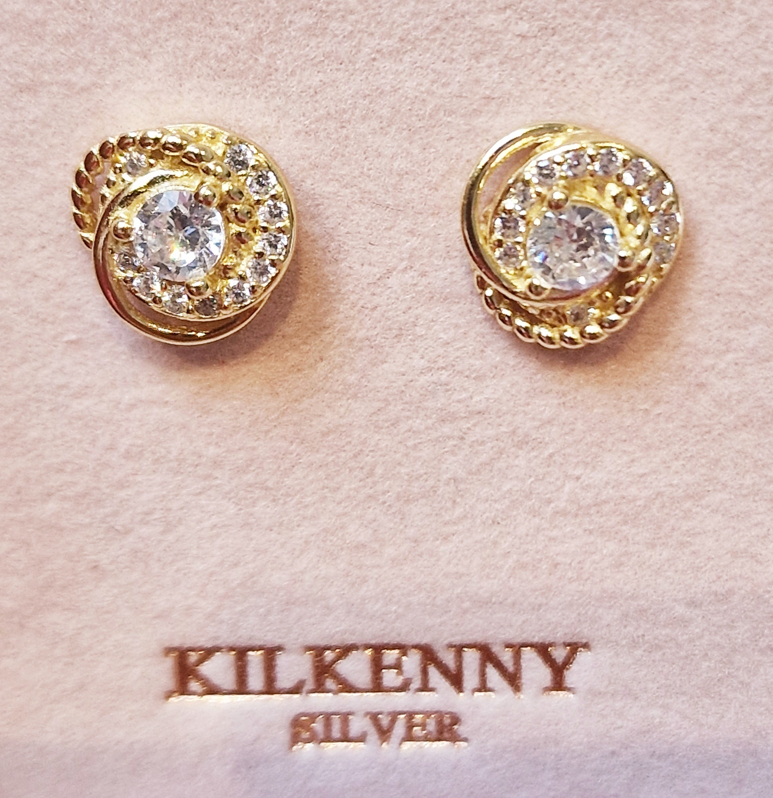 GOLD ROUND HALO STUD EARRINGS e1918