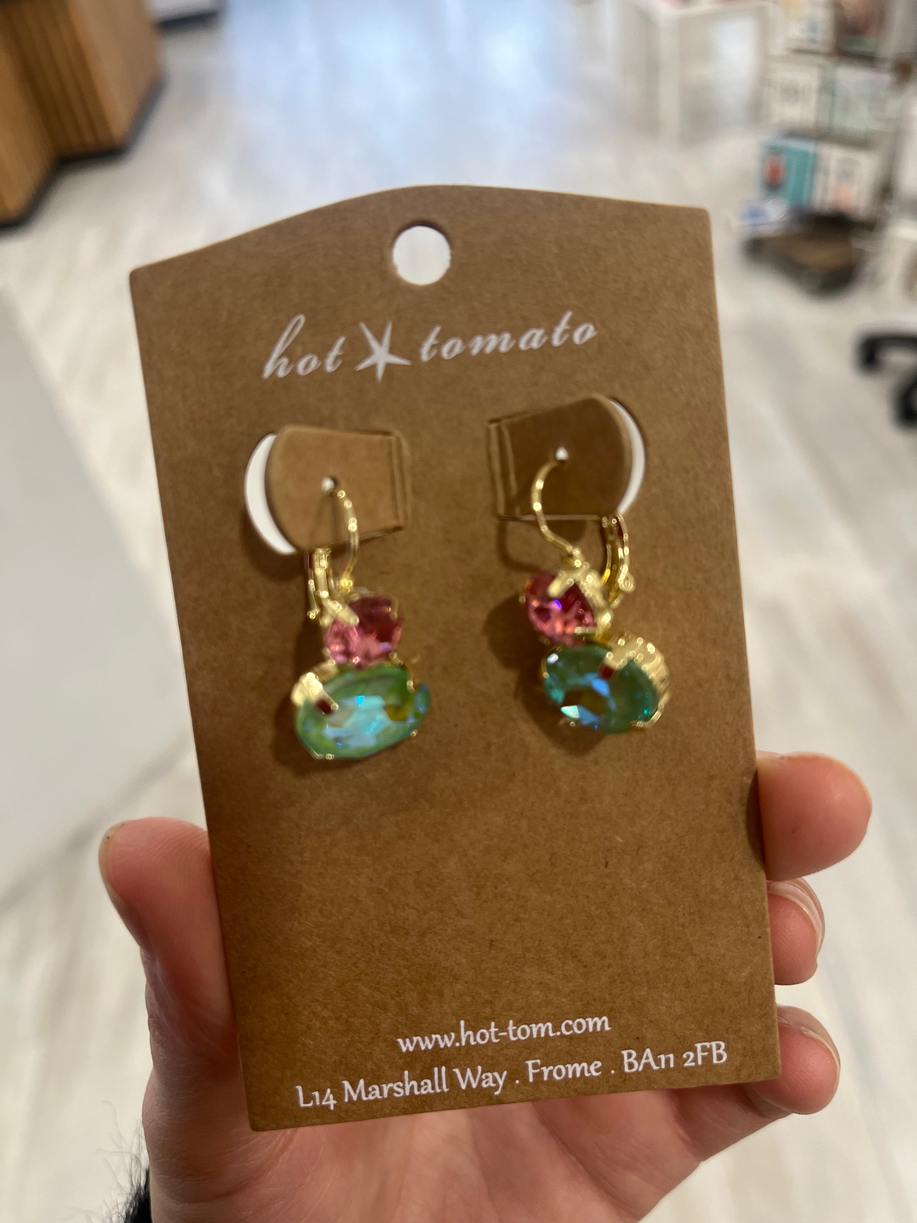 HU094 Stepping Out Double Studs - Emerald & Turq