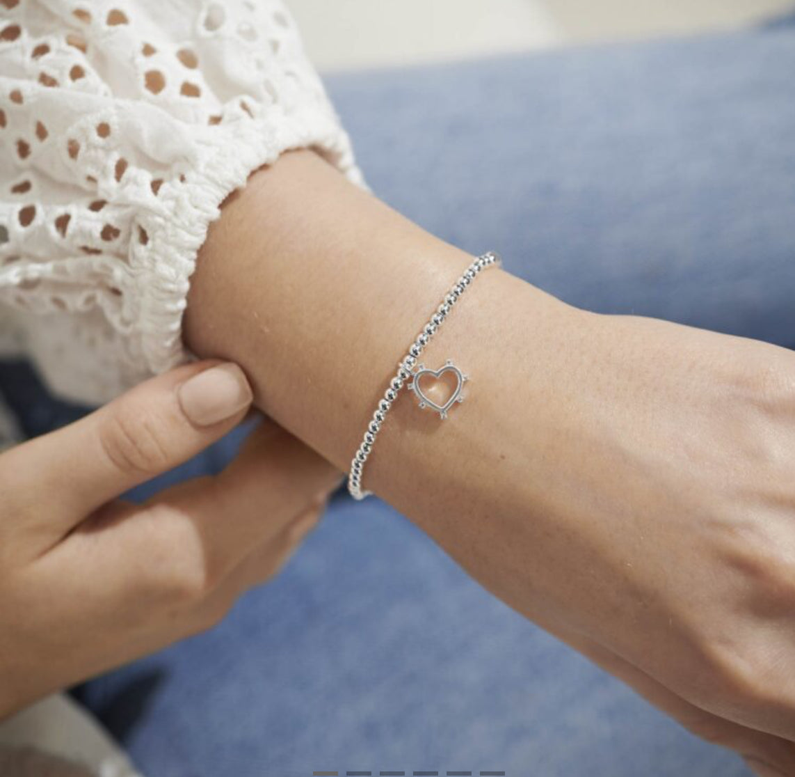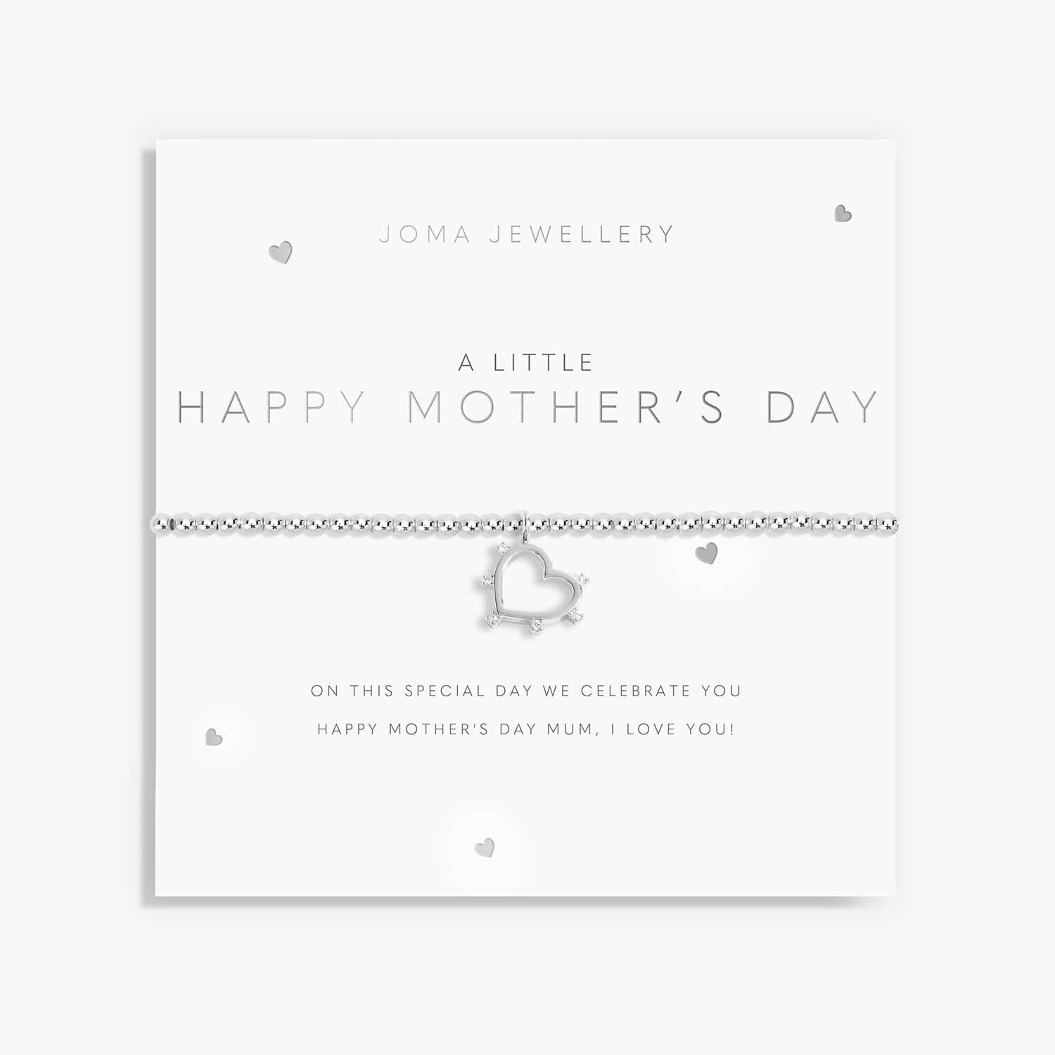 Our A Little 'Happy Mother's Day' Bracelet features a silver-plated design that will dazzle with every movement. Featuring a stretch-bead style and a sparkling heart-shaped charm, wrapped around one of our stylised cards and framed by a sweet poem.