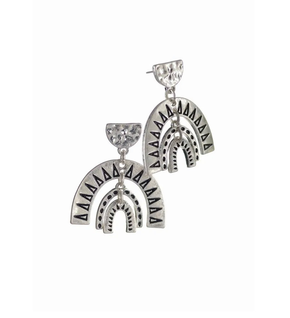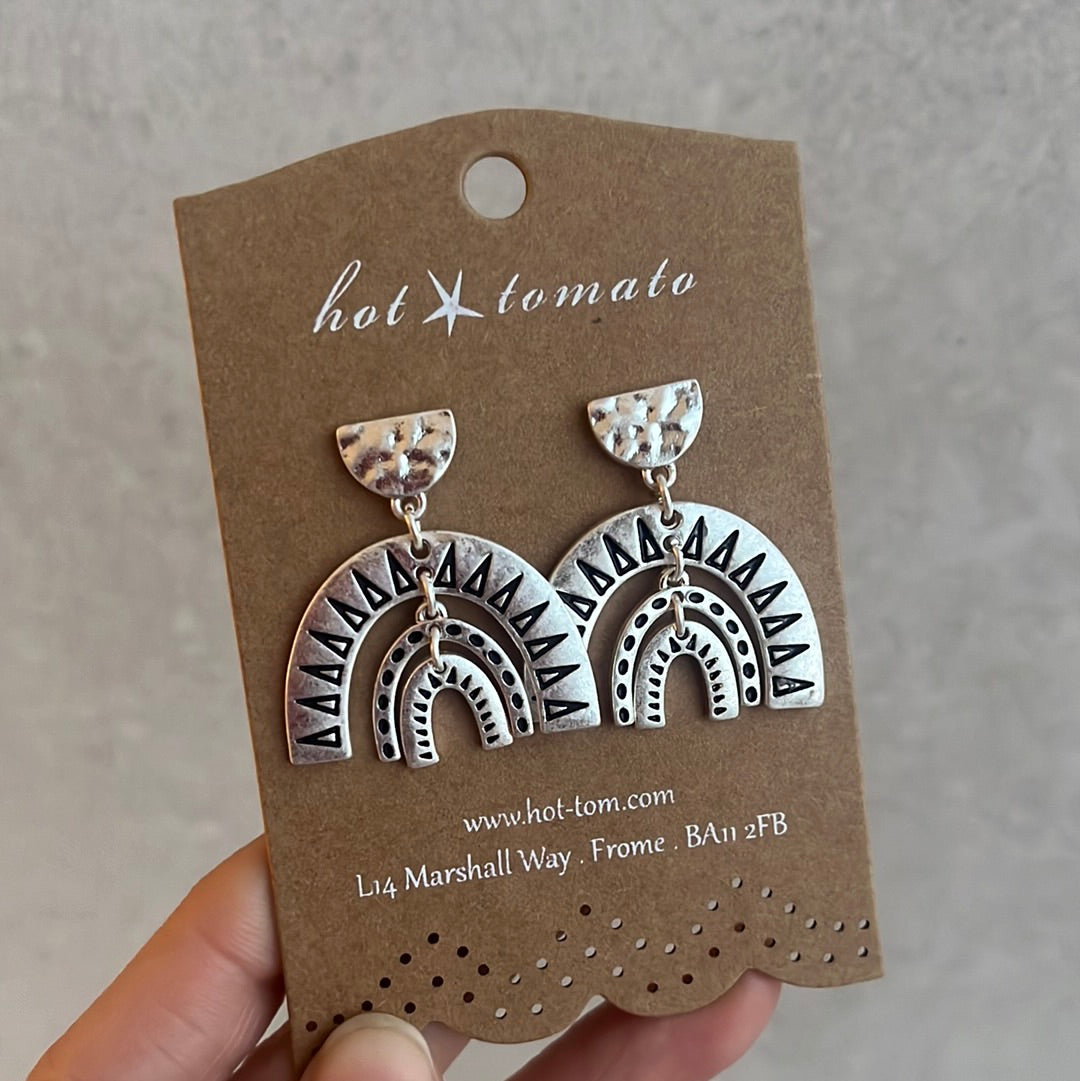 - LF765 Of The Aztecs Triple Drops - Worn SilverPresented on a cardboard backing