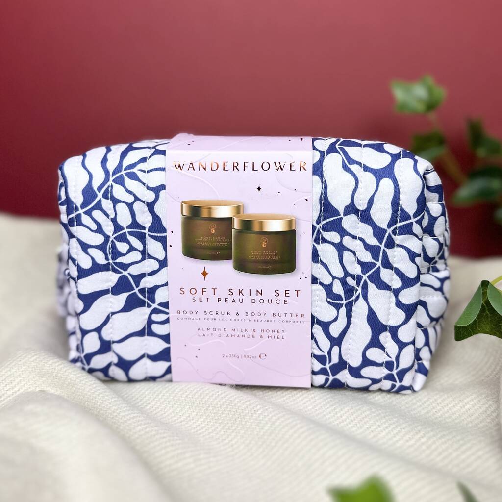 Treat your skin to a gentle bloom with the Wanderflower Soft Skin Set. This playful duo pampers your delicate skin, leaving it feeling irresistibly soft and lightly refreshed. Perfect for turning everyday skincare into a delightful ritual, it’s your skin’s new best friend for a fresh, radiant glow.