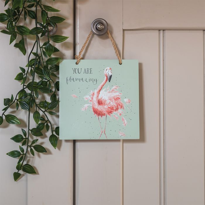 PRETTY IN PINK' FLAMINGO WOODEN PLAQUE