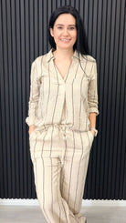 The Ava shirt features a relaxed fit, textured stripe fabric and collared neckline. Pair with the matching trousers for an effortless co-ord.