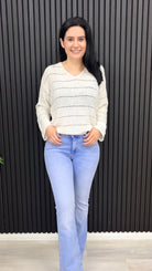 The Pamela flat knit jumper features a relaxed fit, V-neckline and lightweight open-stitch knit.