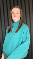 Our Teal Snap Collar Oversized Sweatshirt will make a splash in your wardrobe. Stay comfy and chic with ease in this vibrant, fleece-lined essential. Embrace the snap trend and add a playful feel to your coffee date or shopping spree. For the perfect fit, we recommend sizing down from your regular size.