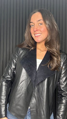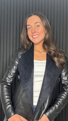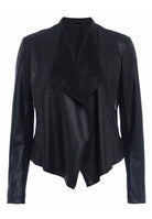 Black faux leather waterfall jacket with zip detail. A stylish fitted jacket perfect for everyday and evening wear.