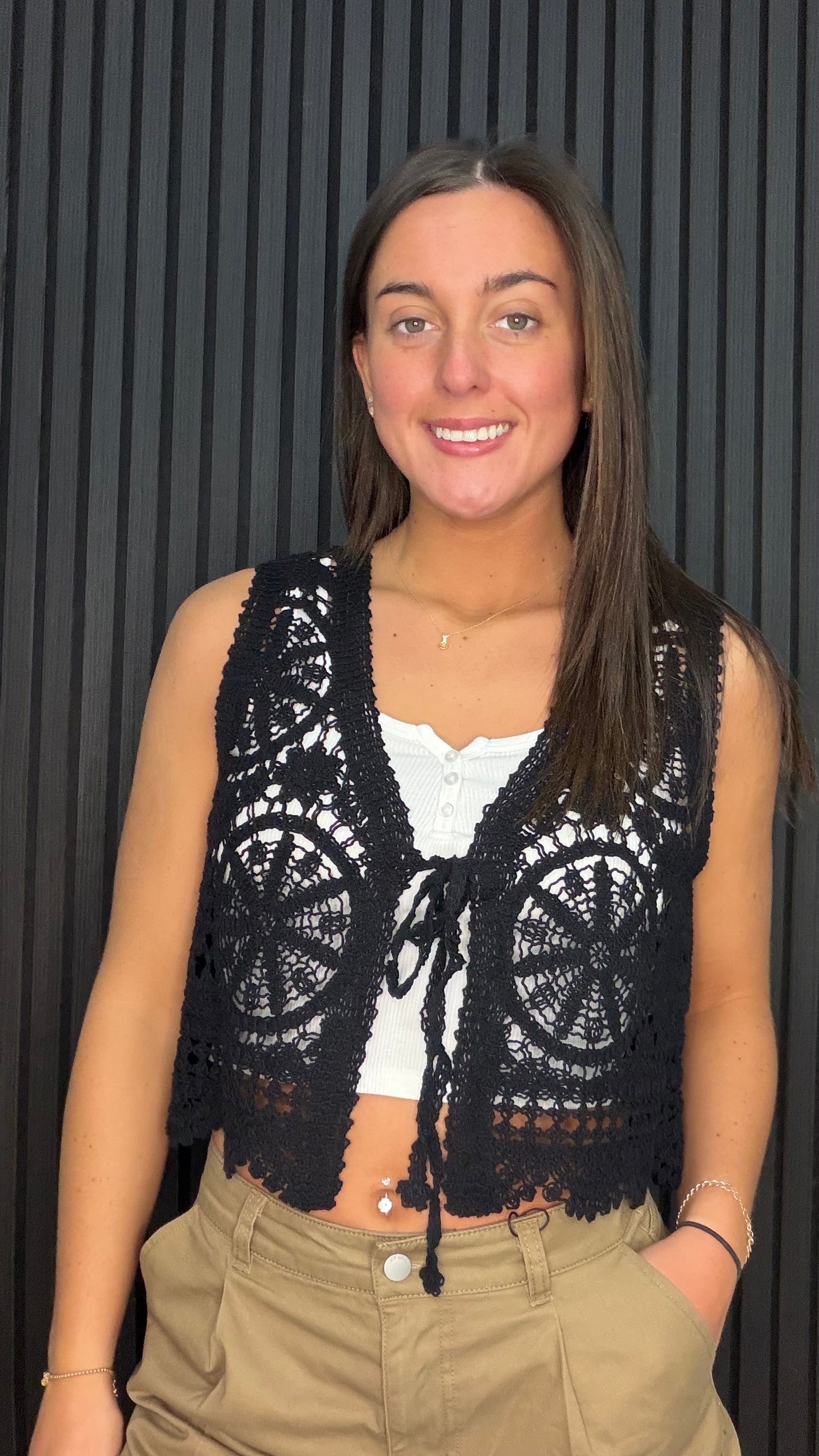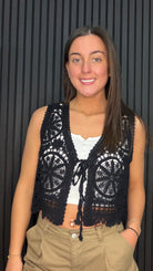 Victoria Crochet Tie Front Waistcoat | Black Boho Layering Vest
