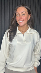 Your wardrobe is ready to welcome our Wren Half Zip Sweater into its regular rotation. This soft sweatshirt stars in a cream hue, framed by long sleeves and a modish funnel neckline with half zip fastening.