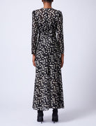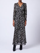 Satin is a sheer favourite, and our Diandra Satin Devore Maxi Dress takes it to the max. This maxi dress boasts a distinct geo pattern in monochrome devore, with its sheer long sleeved silhouette paired with a classic slip dress lining for minimalist modesty.