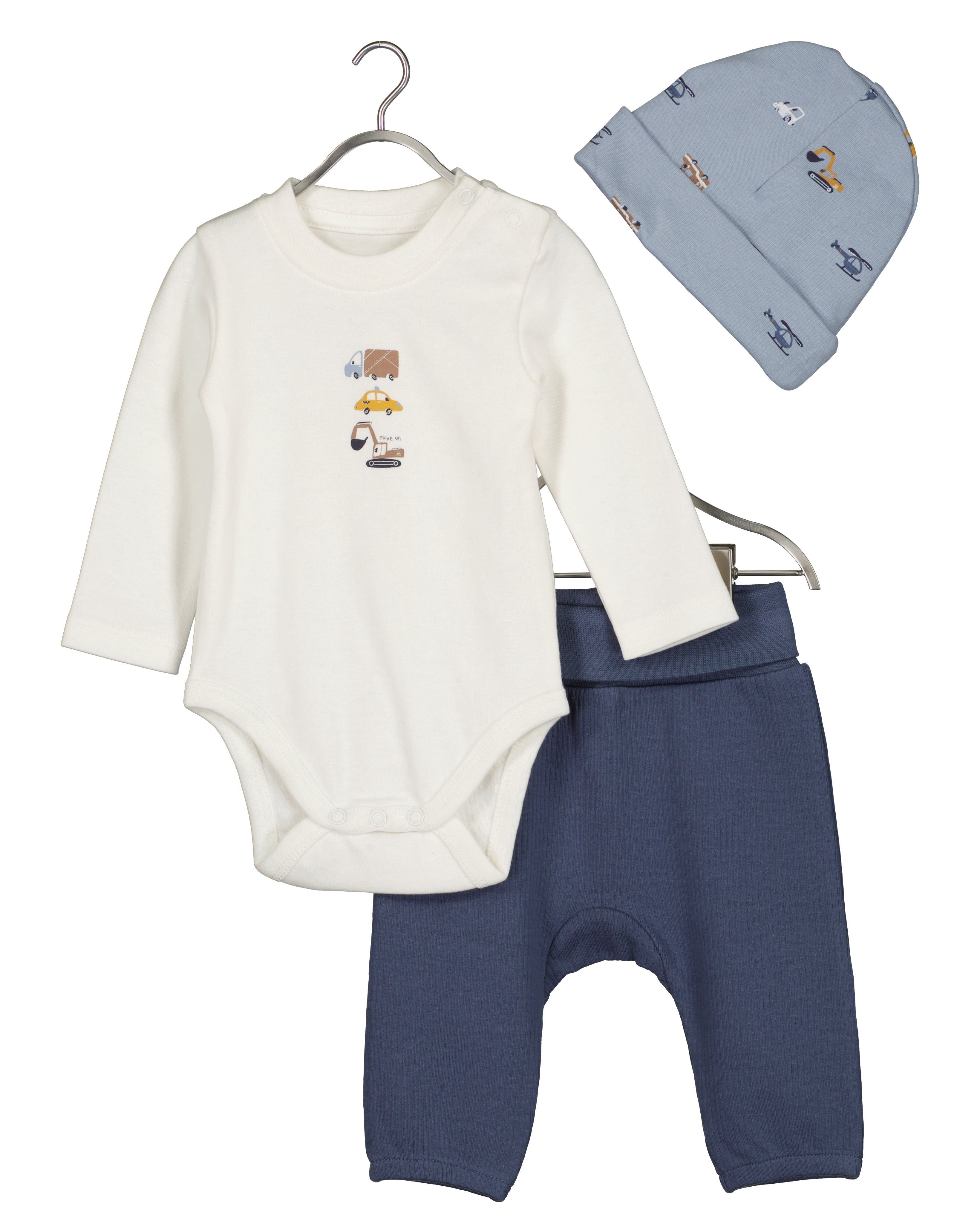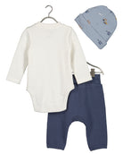 3 pce Blue Set - Babygrow, Bottoms and hat