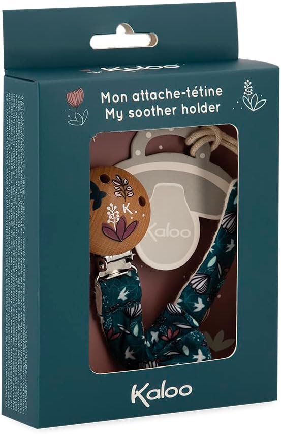 This attractive 16.5cm soother holder made of two materials, one side in cotton gauze, is perfect for a sweet and sophisticated birth gift. With its delicately printed wooden hook in natural colours, it accompanies baby wherever he goes. Its Nature print gives it a delicate touch.