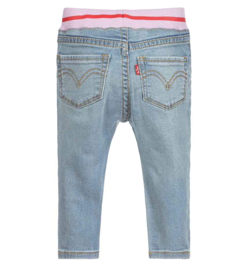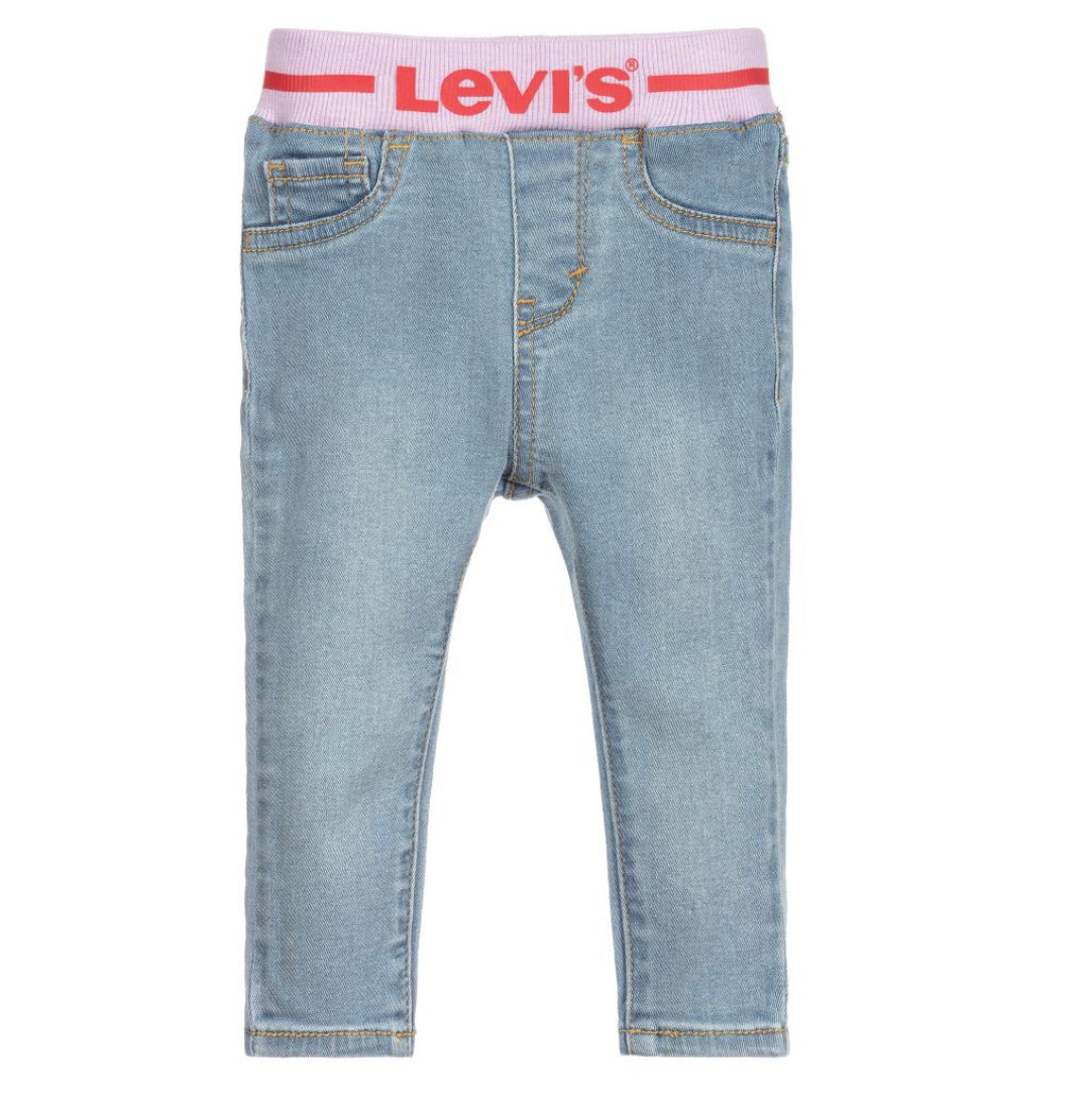 Girl's turquoise blue, half zip sweatshirt from Levi's. The top has an elasticated waist with stripes down both arms, and a white Levi's logo on the chest.