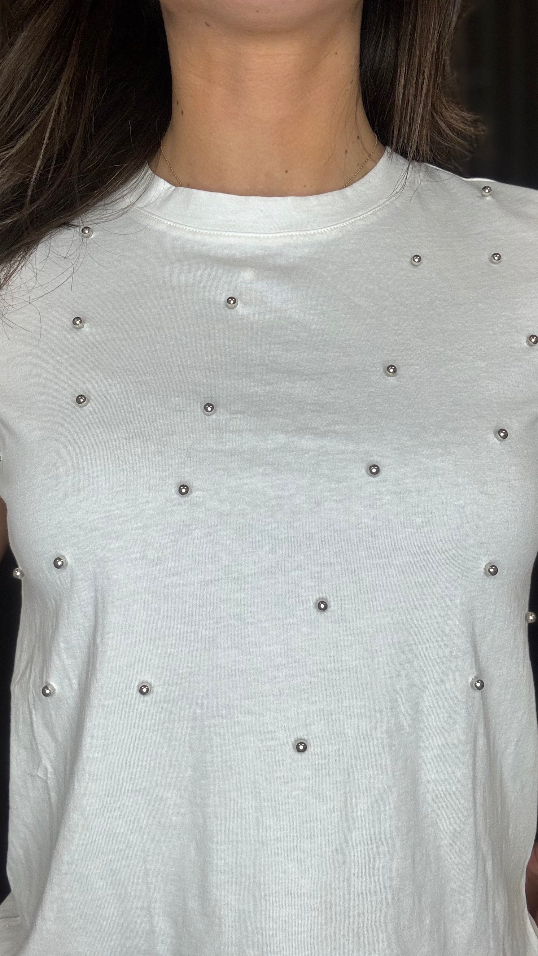 Hester Tee | Stud Detail T-Shirt | White Embellished Short Sleeve Top