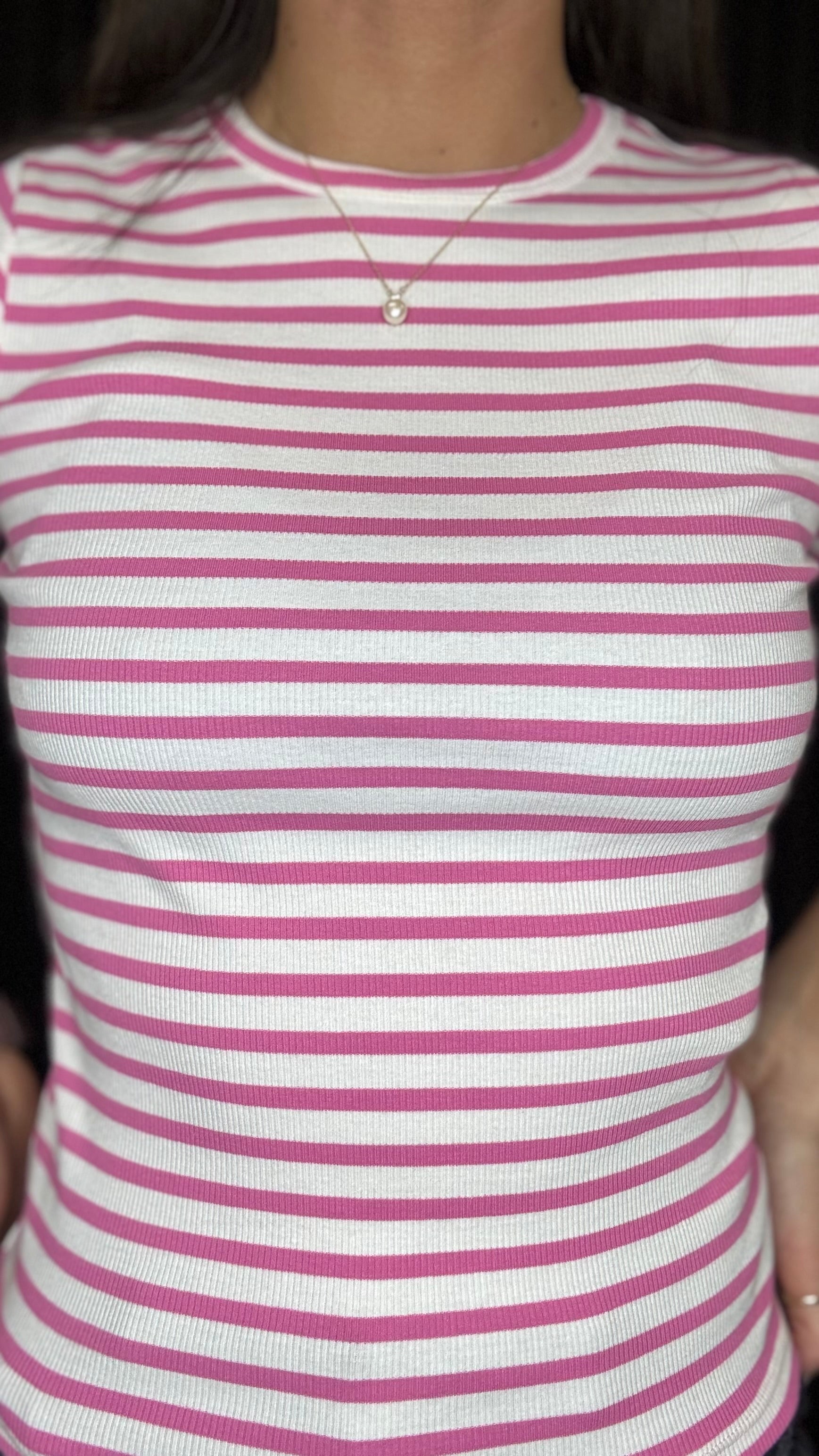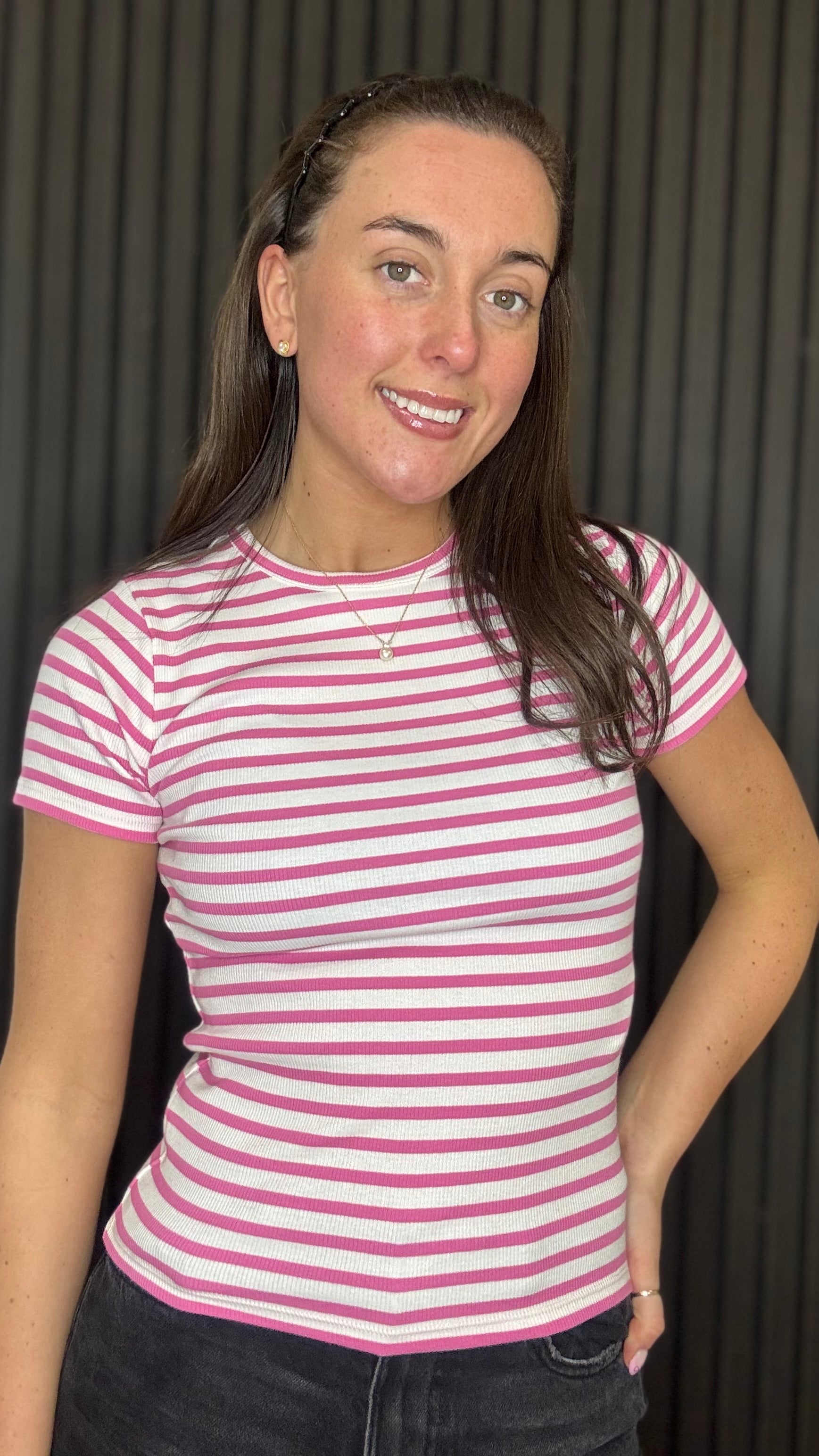 Sally Tee | Striped Short Sleeve T-Shirt | Everyday Basics | Wild Orchid