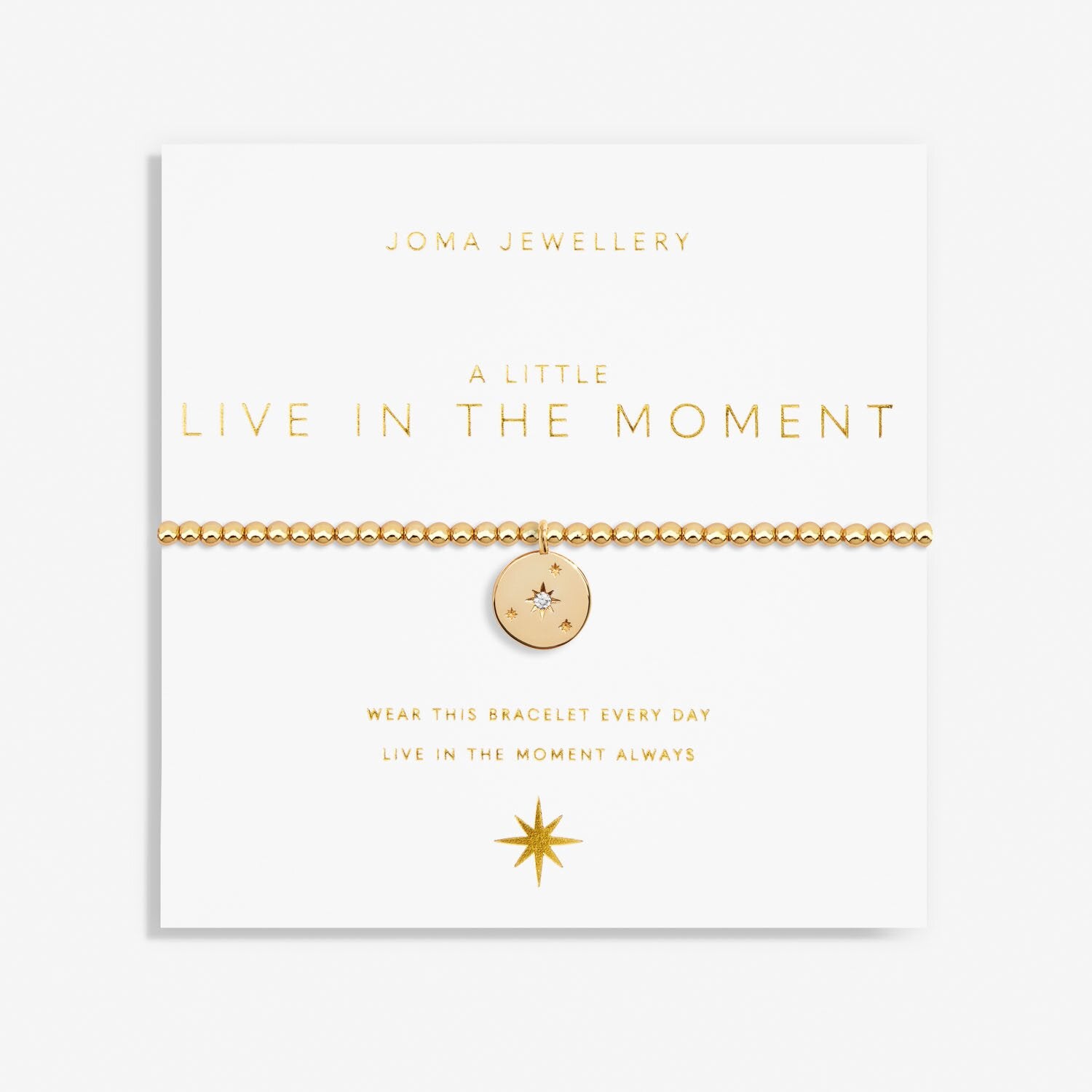 Say hello to one of the new additions to our gorgeous Gold-Plated A Little Collection! Our A Little 'Live in The Moment' Bracelet in Gold-Plating features a captivating stretch design and a precious Gold-Plated celestial disc charm. Wrapped around one of our stylised cards and framed with a sweet sentiment, this piece is sure to make a standout gift and a wonderful addition to your loved one's Collection.