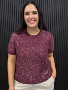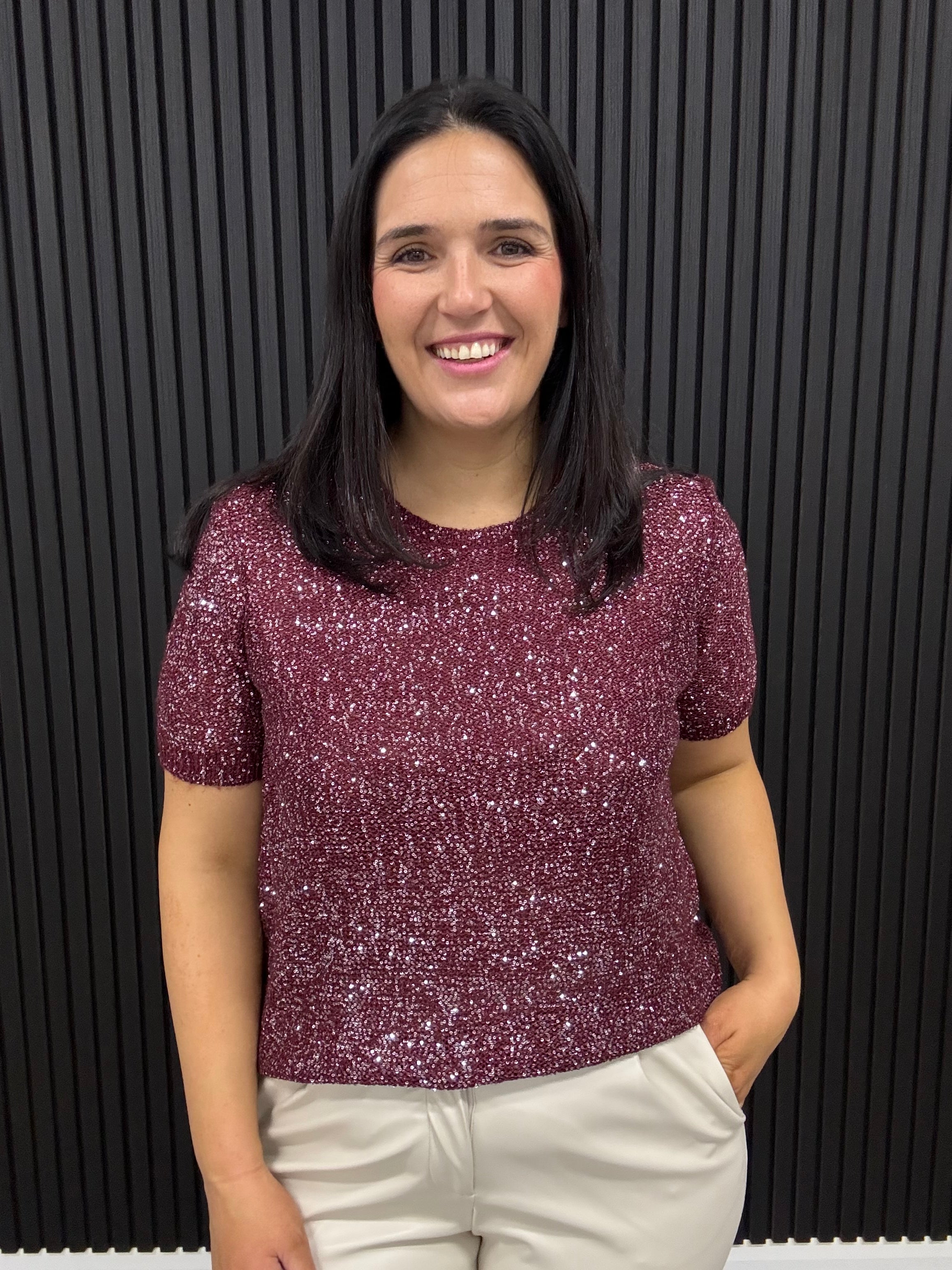 ABBY SEQUINS O-NECK PULLOVER KNT Burgundy
