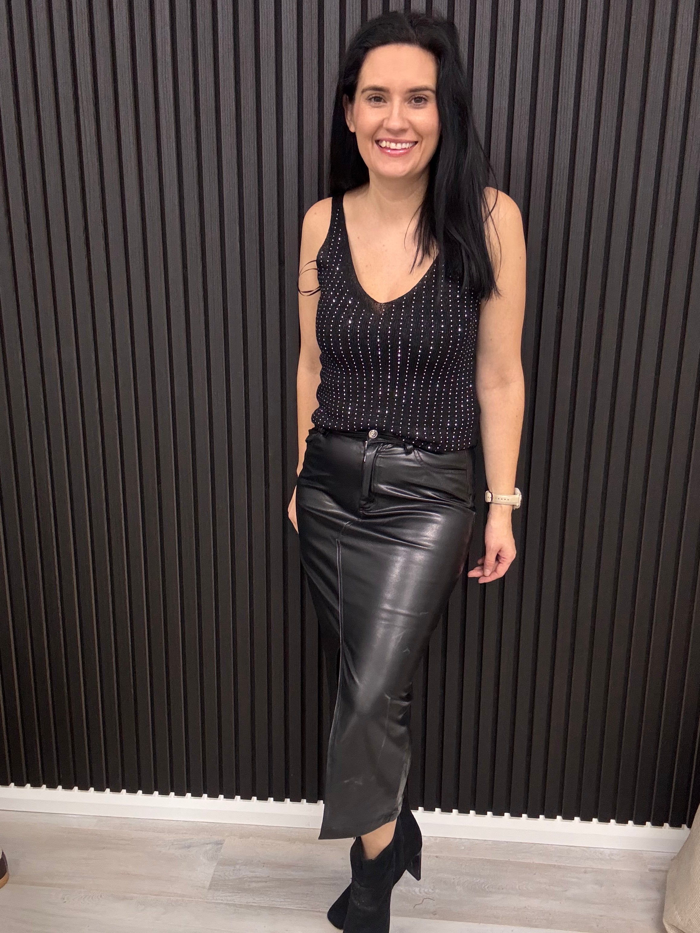 Anya Black metallic HW midi skirt