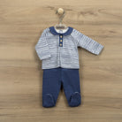 Baby boy set with Leggings Plus Baby Neck T-shirt in Navy Blue and Light Blue. Made with 100% cotton fabric. Soft, durable, comfortable and ideal for sensitive baby skin