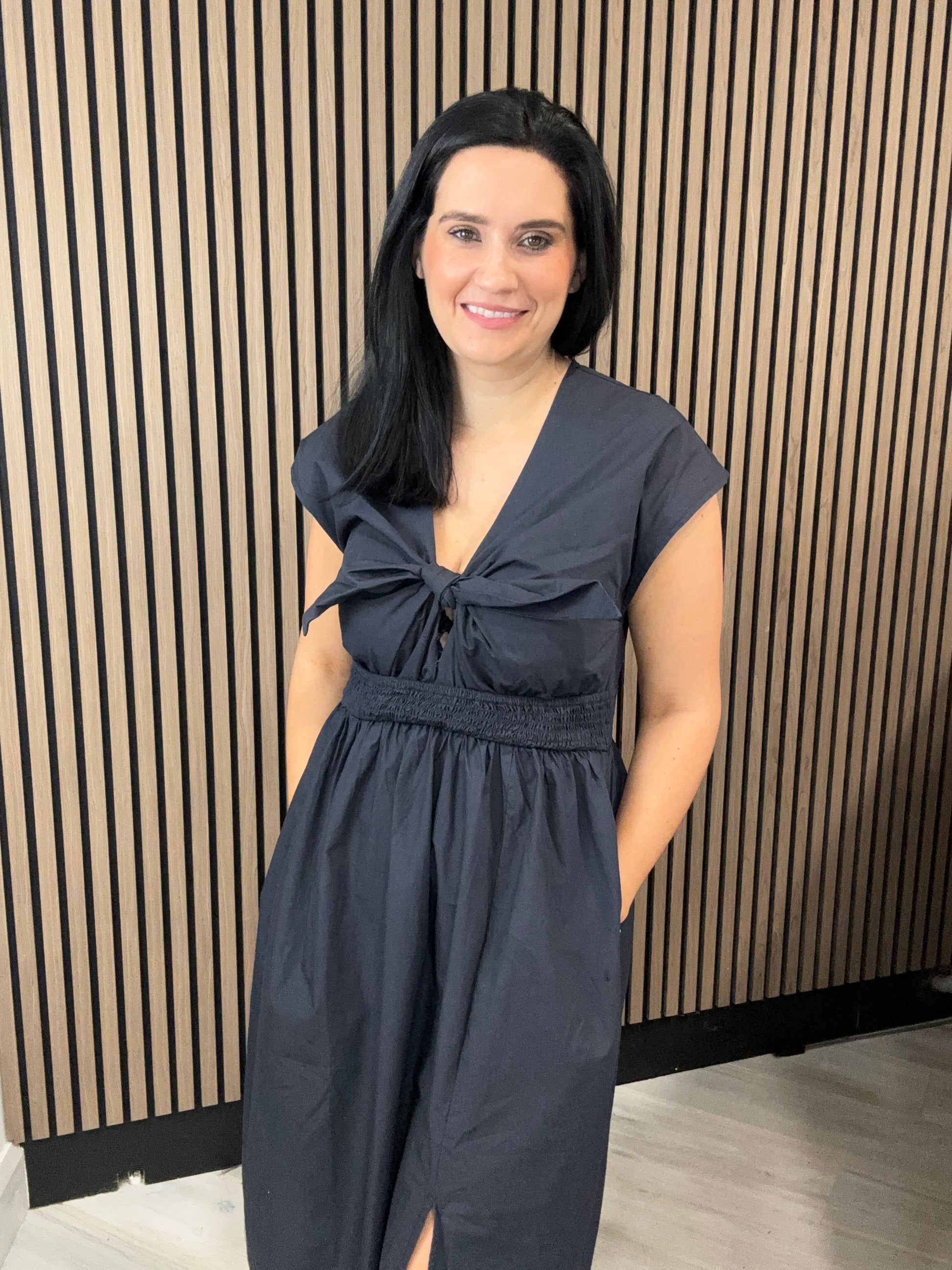 Our Barletta Poplin Tie Midi Dress exudes confidence with its mix of modern design and timeless appeal. This