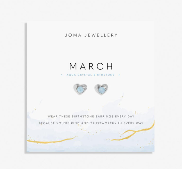 Let us introduce you to our Birthstone A Little earrings - now with an elevated design! Featuring two pretty gemstone-set heart studs crowned with semi-precious Aqua Crystal gemstones, our Birthstone A Little 'March' earrings in silver plating are sure to make the birthday girl's ear stack shimmer. Presented on a coloured limewash card with gold foil detailing, these little studs make the most wonderful gift, whether they're gifted alone or alongside the rest of our birthstone collection!