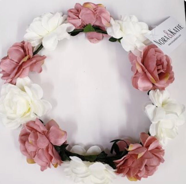 Bohemian style floral crown is approx. 18cm diameter and is a comfortable fit in cream and blush tones.
