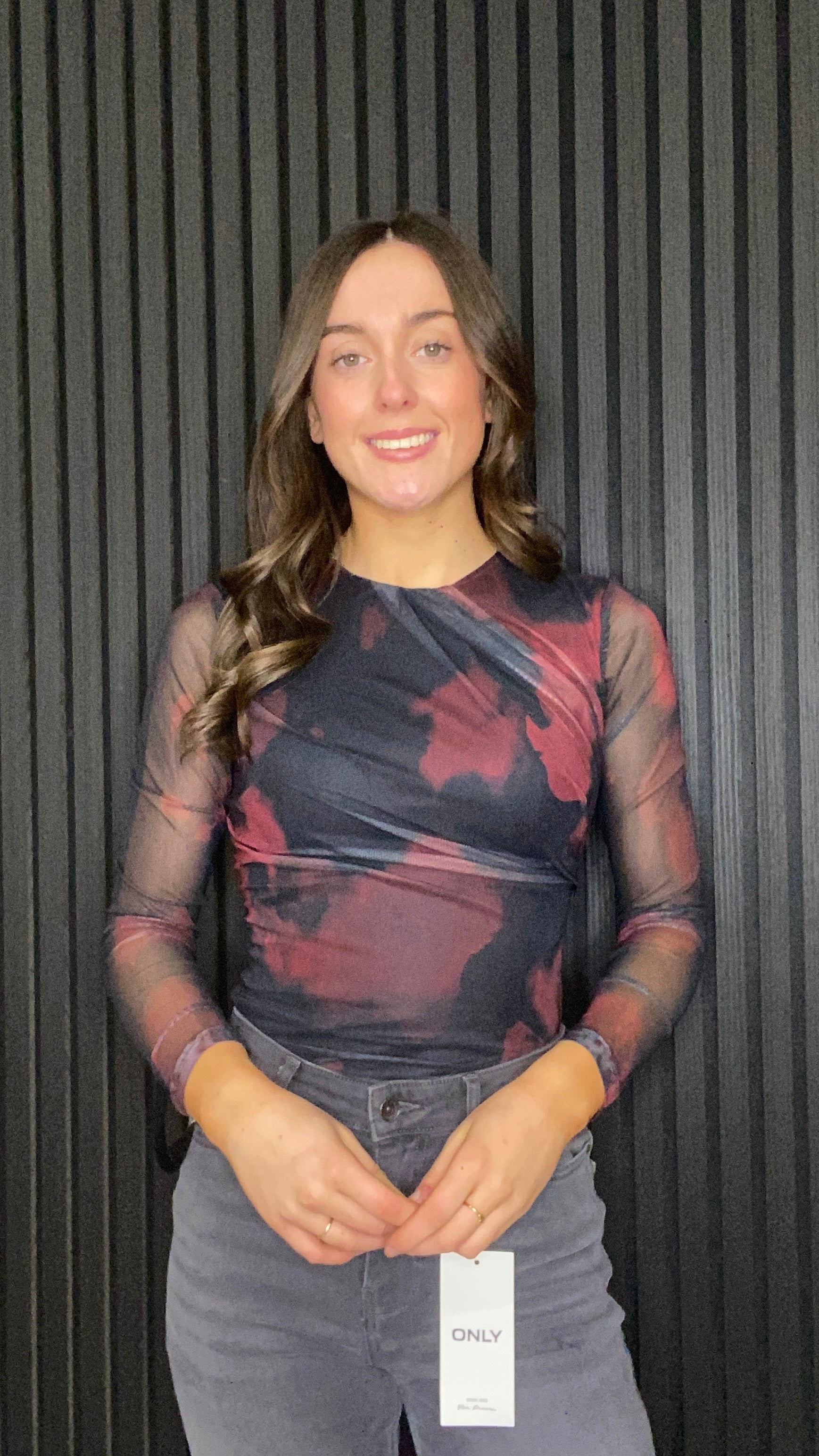 Be right on trend in our Burgundy And Black Smudge Print Long Sleeve Mesh Bodysuit. Featuring a lined mesh body with pleat details on the neckline and side, unlined mesh sleeves and snap fastening. Pair with leather looks, heels and your favourite jewelry for the perfect evening look.