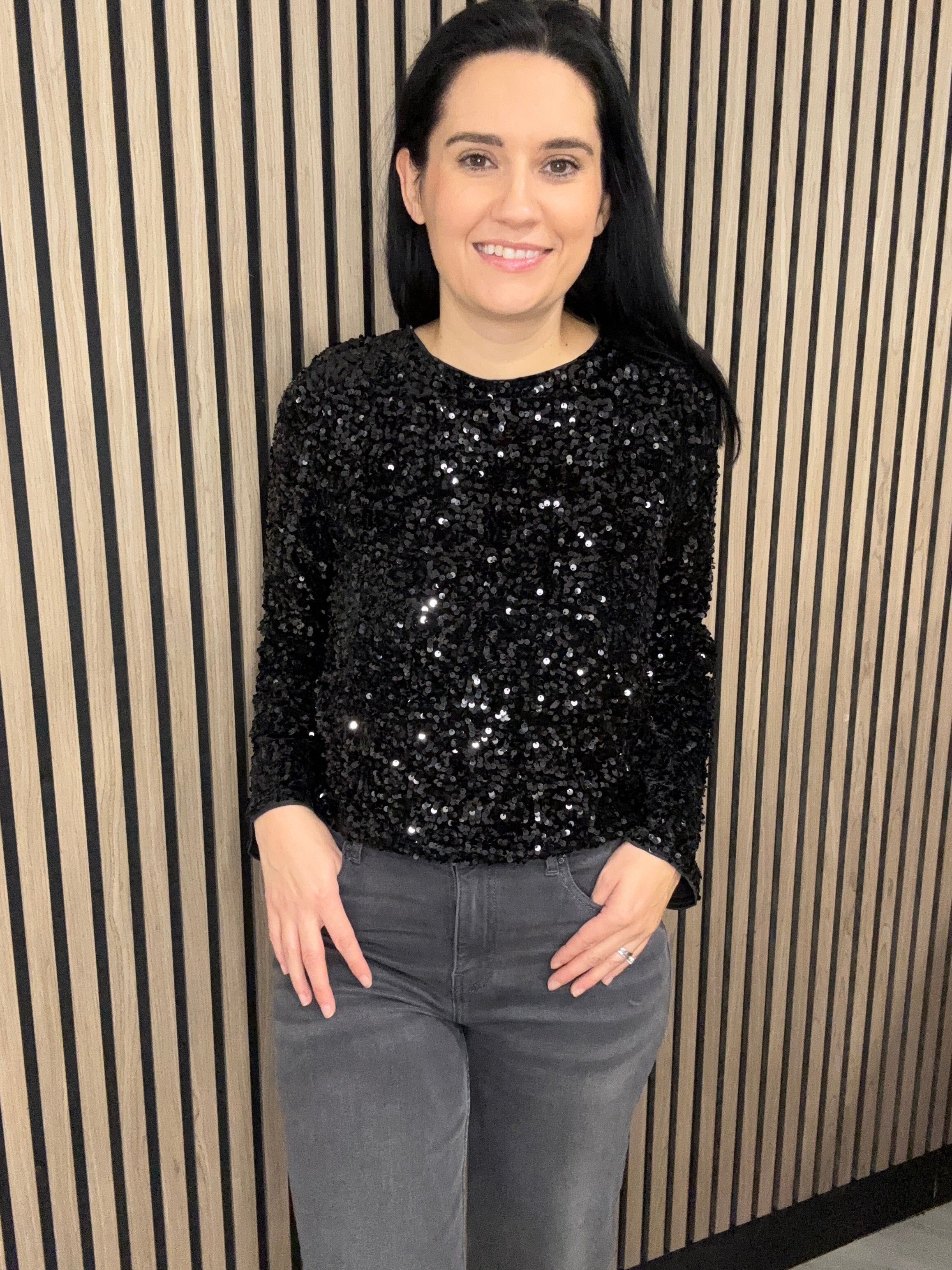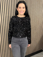 Clara Sequin Bow Top Black