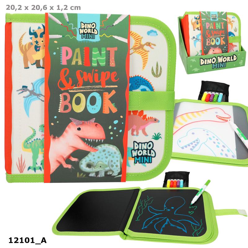 Dino-like colouring fun again and again! In the textile colouring book from Dino World, little dinosaur fans can paint creatively on four black pages and trace one of the cute templates on a transparent page. After they're done, simply wipe it off with a damp piece of kitchen paper! Included: 6 coloured pencils for little hands in a sewn-on pouch.