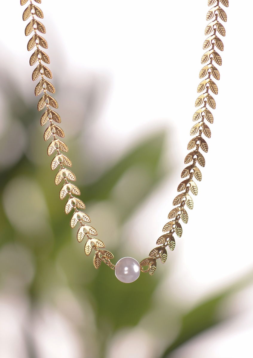 F.Water Pearl & Laurel - Stainless Steel W/18k Gold necklace