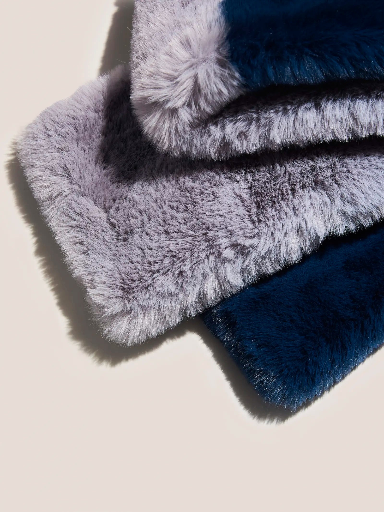 Our motto this season is less fury, more furry (faux, of course). A warm two-tone faux fur scarf, here to tick your style and comfort boxes.