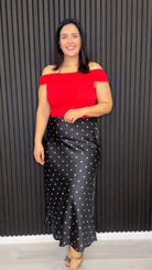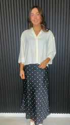 Hailey Satin Midi Skirt Black & Cream Dots