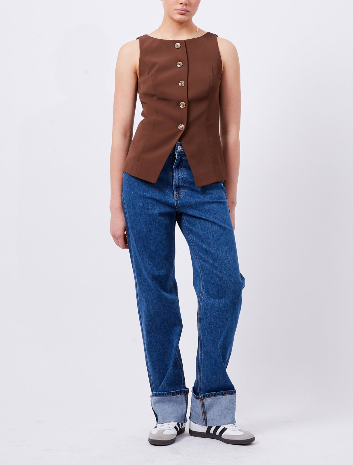 72YBM Harrie Tailored Waistcoat Top - Chocolate
