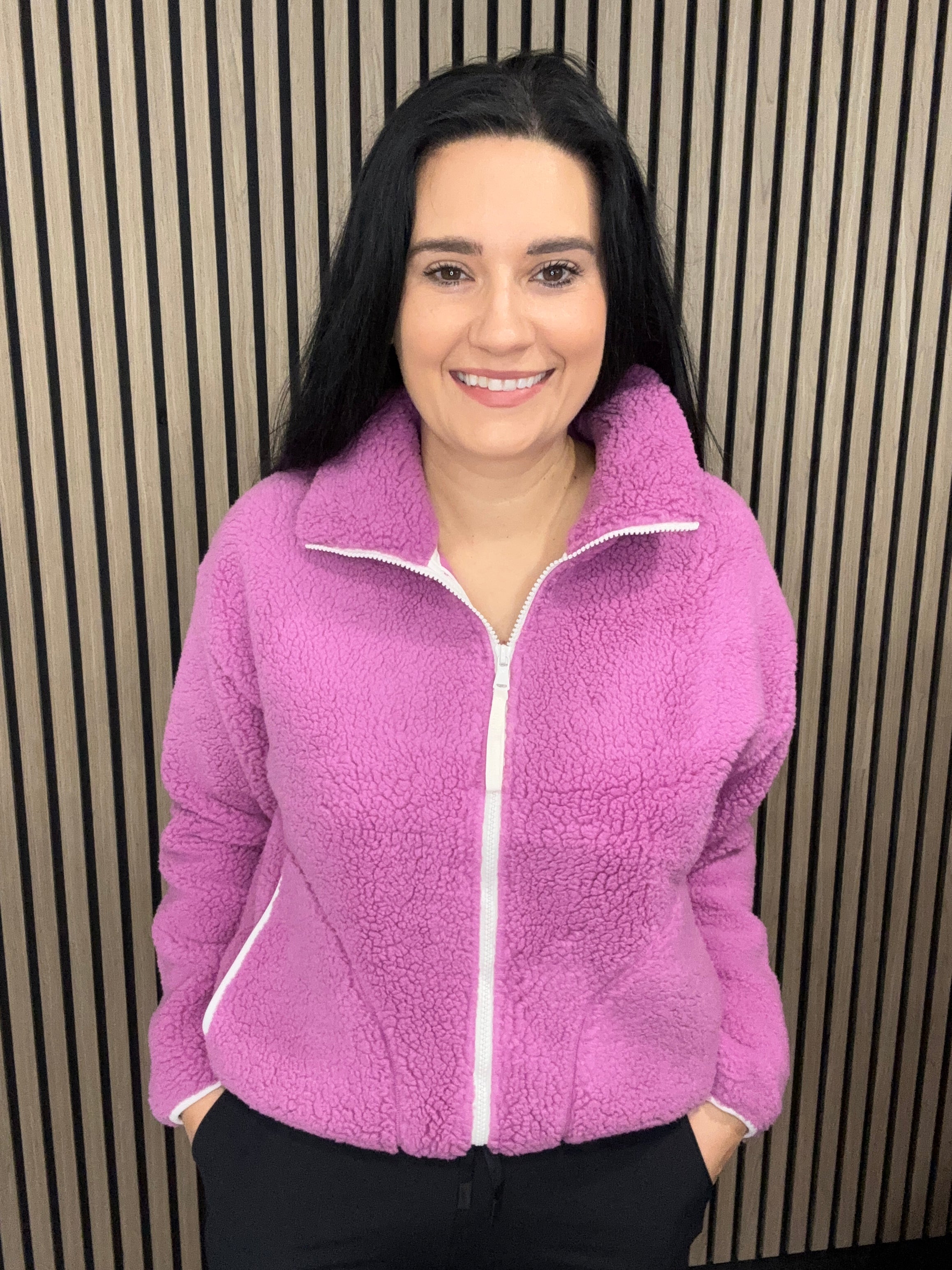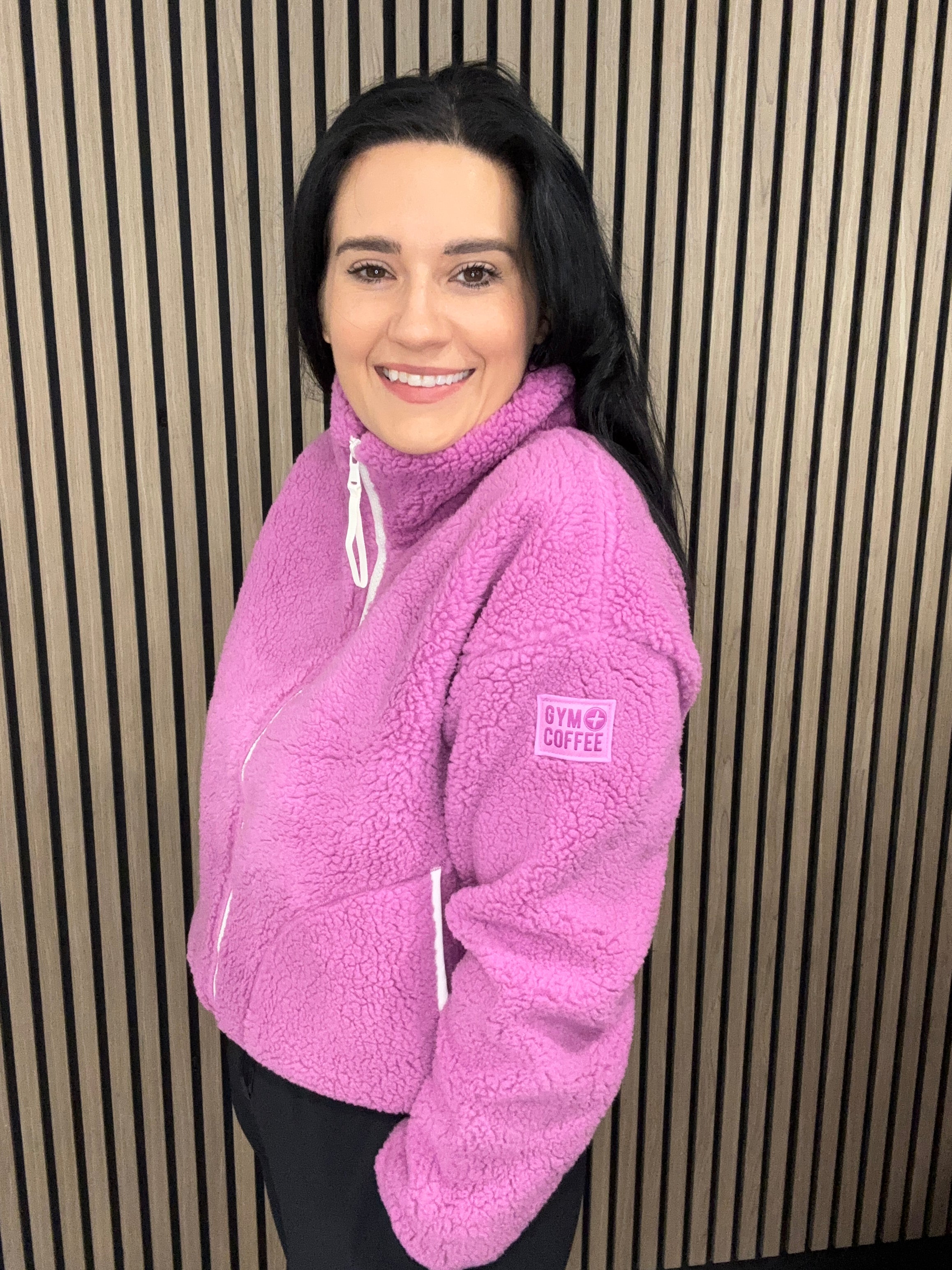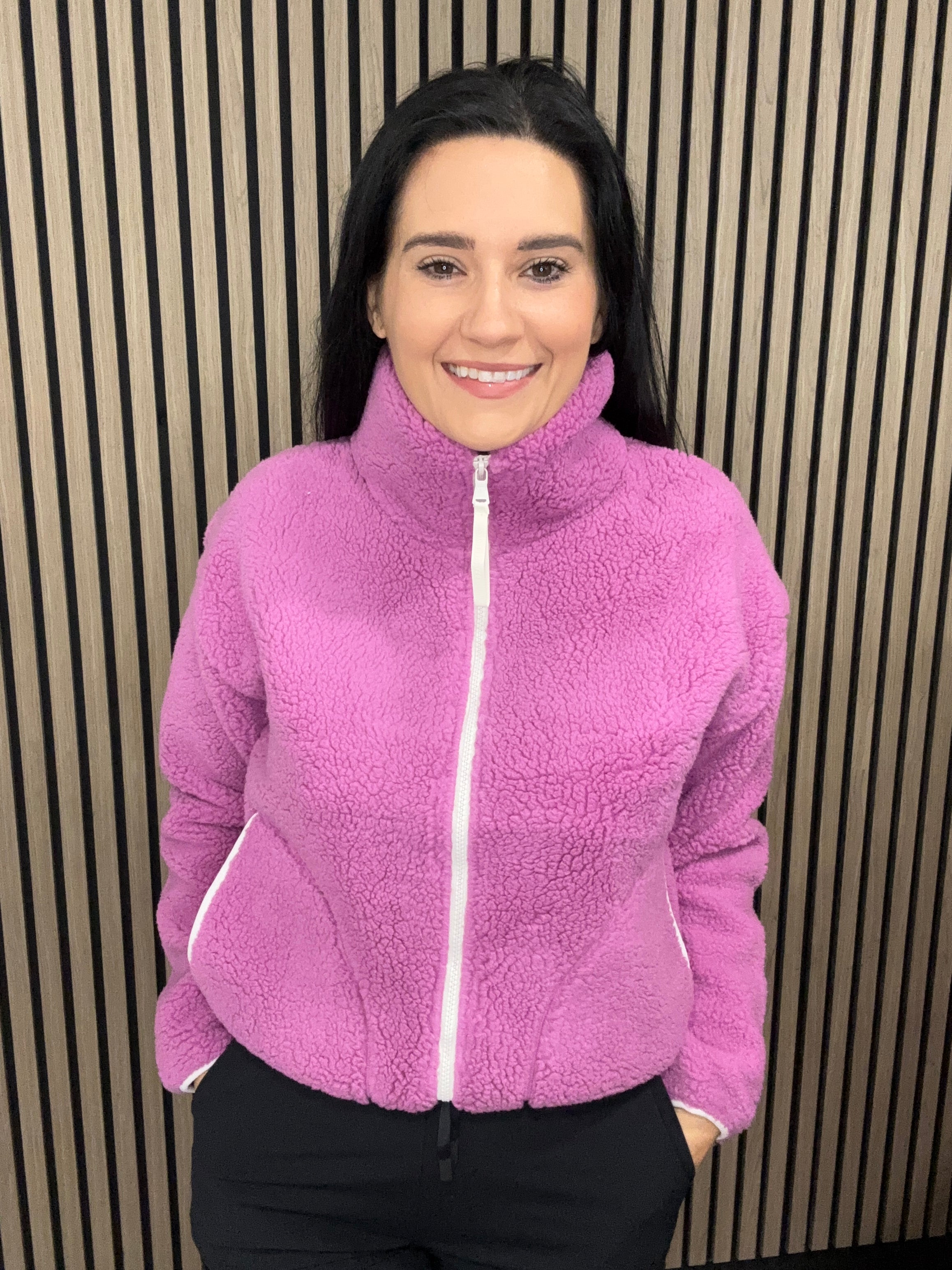 INDUSTRY FLEECE HIGH COLLAR JACKET IN CRISP PINK