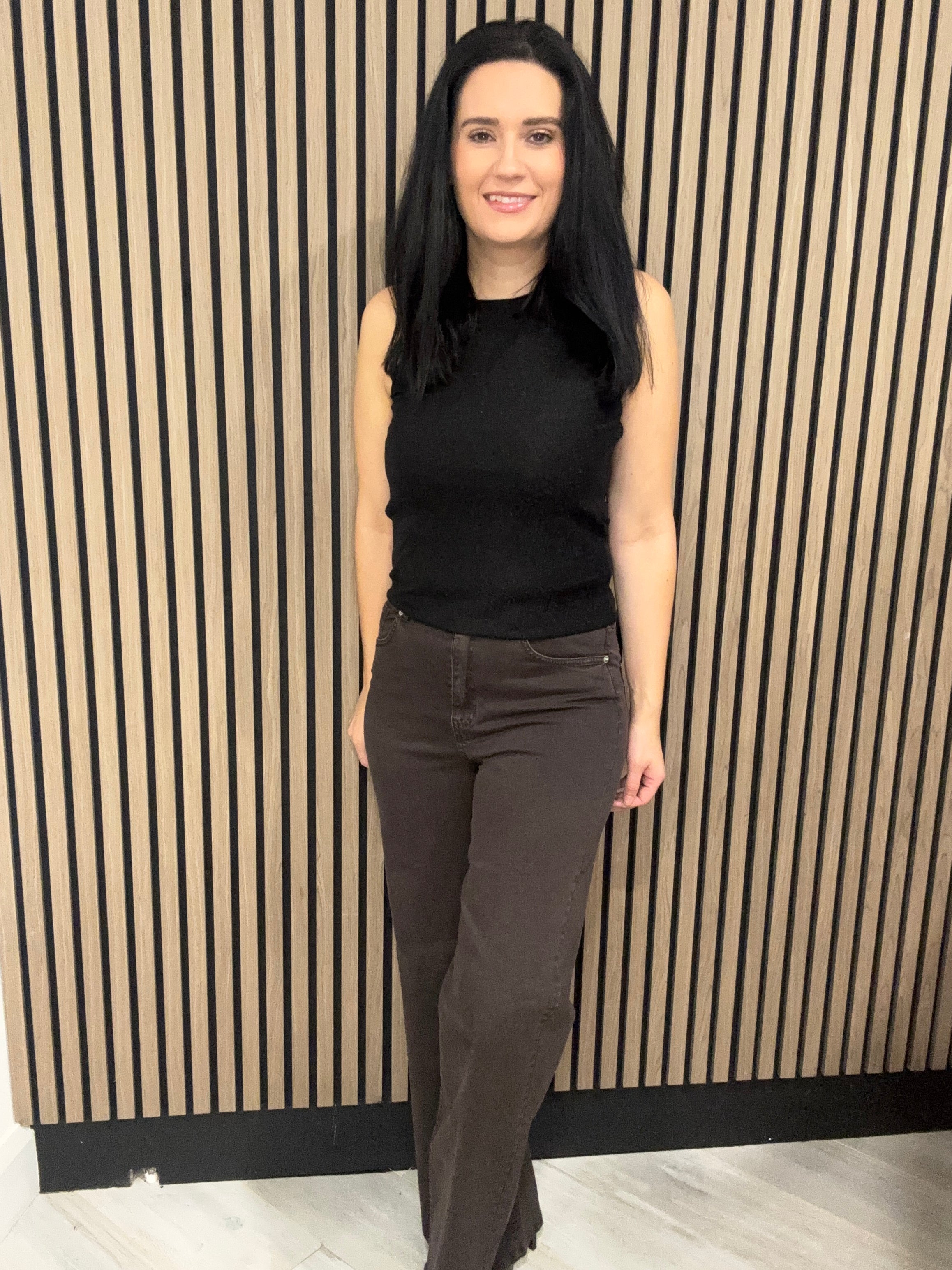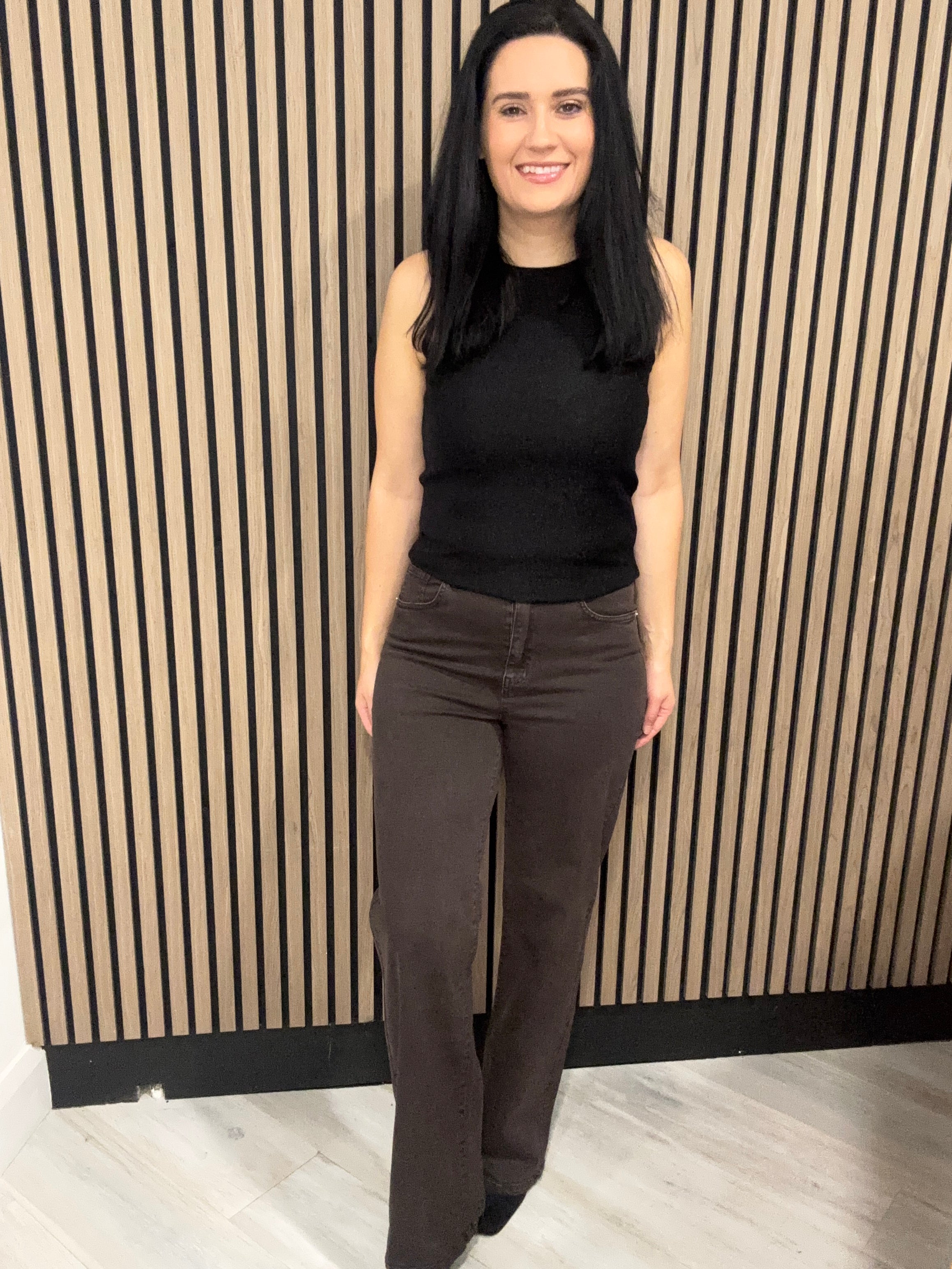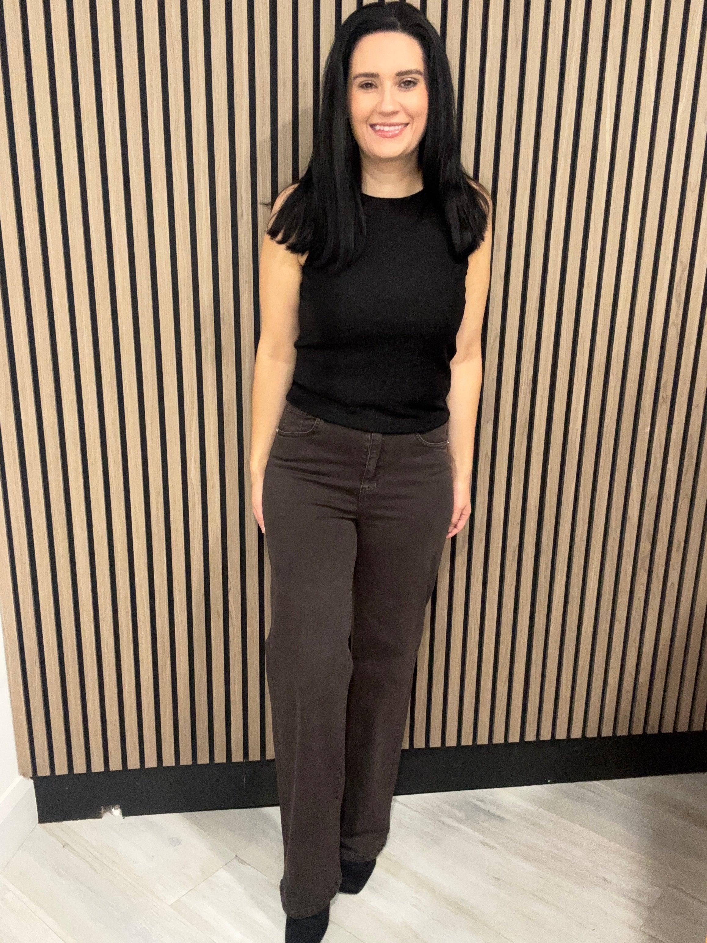Jean length is 32”. Rose is 5’ 5.5” and wearing the jeans with heels.