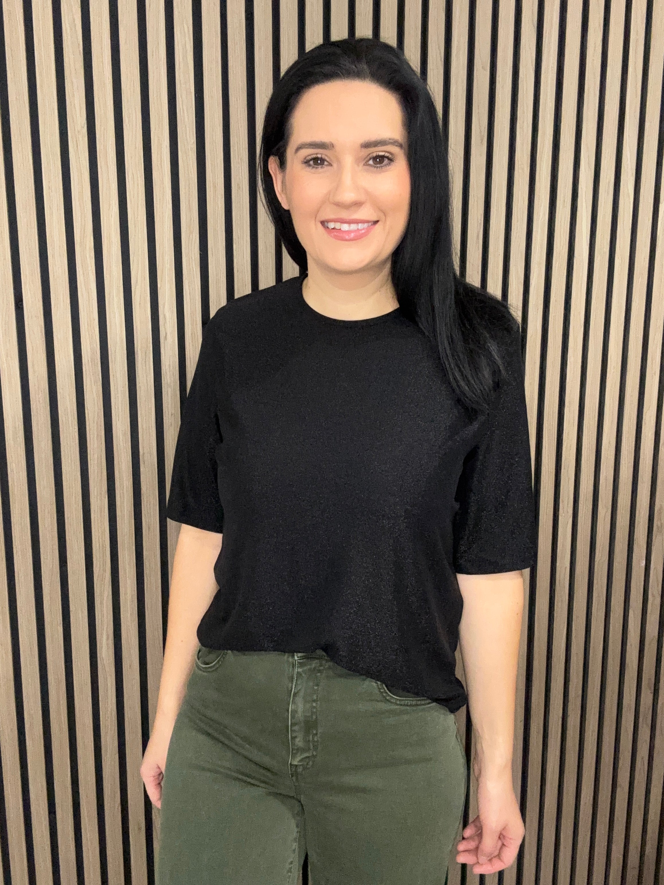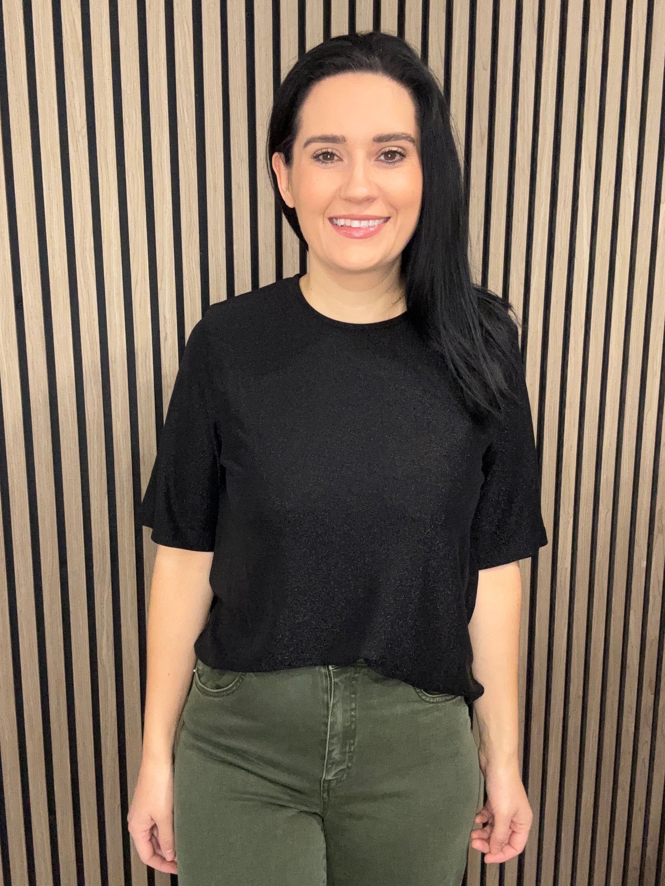Lauren round neck shimmer black top - angel sleeve