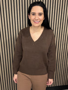 Marni loose v neck jumper - chocolate brown