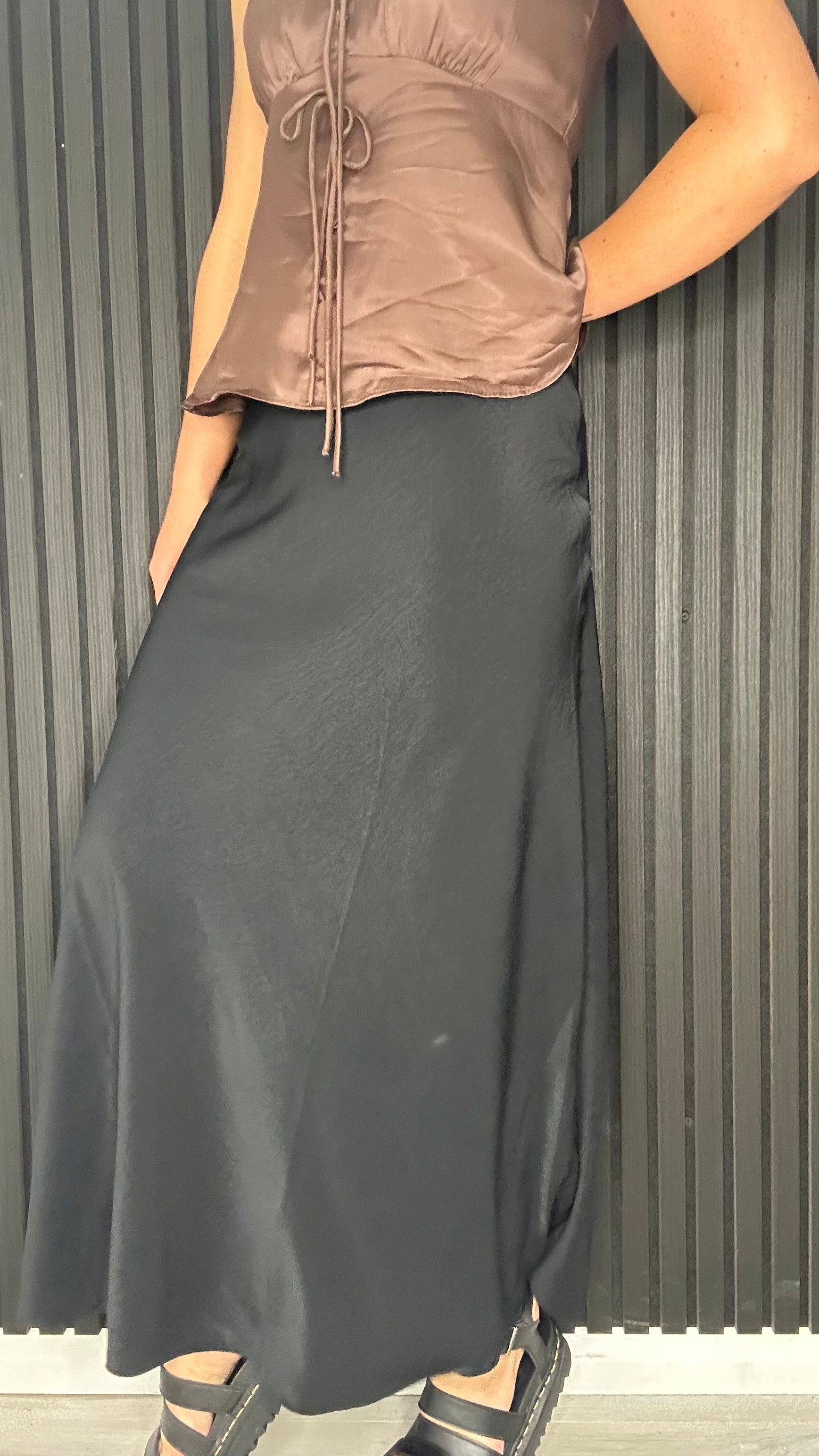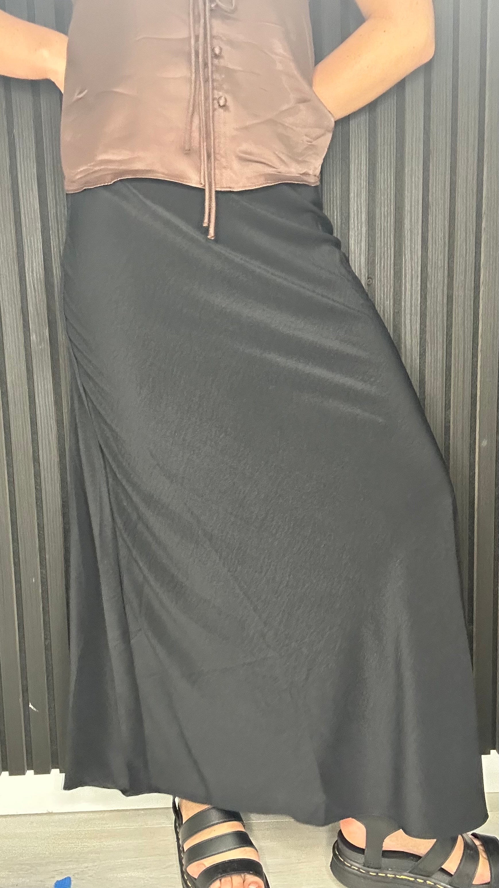 Black slip skirt with a soft drape and flattering fit. Easy, versatile and perfect for everyday wear.