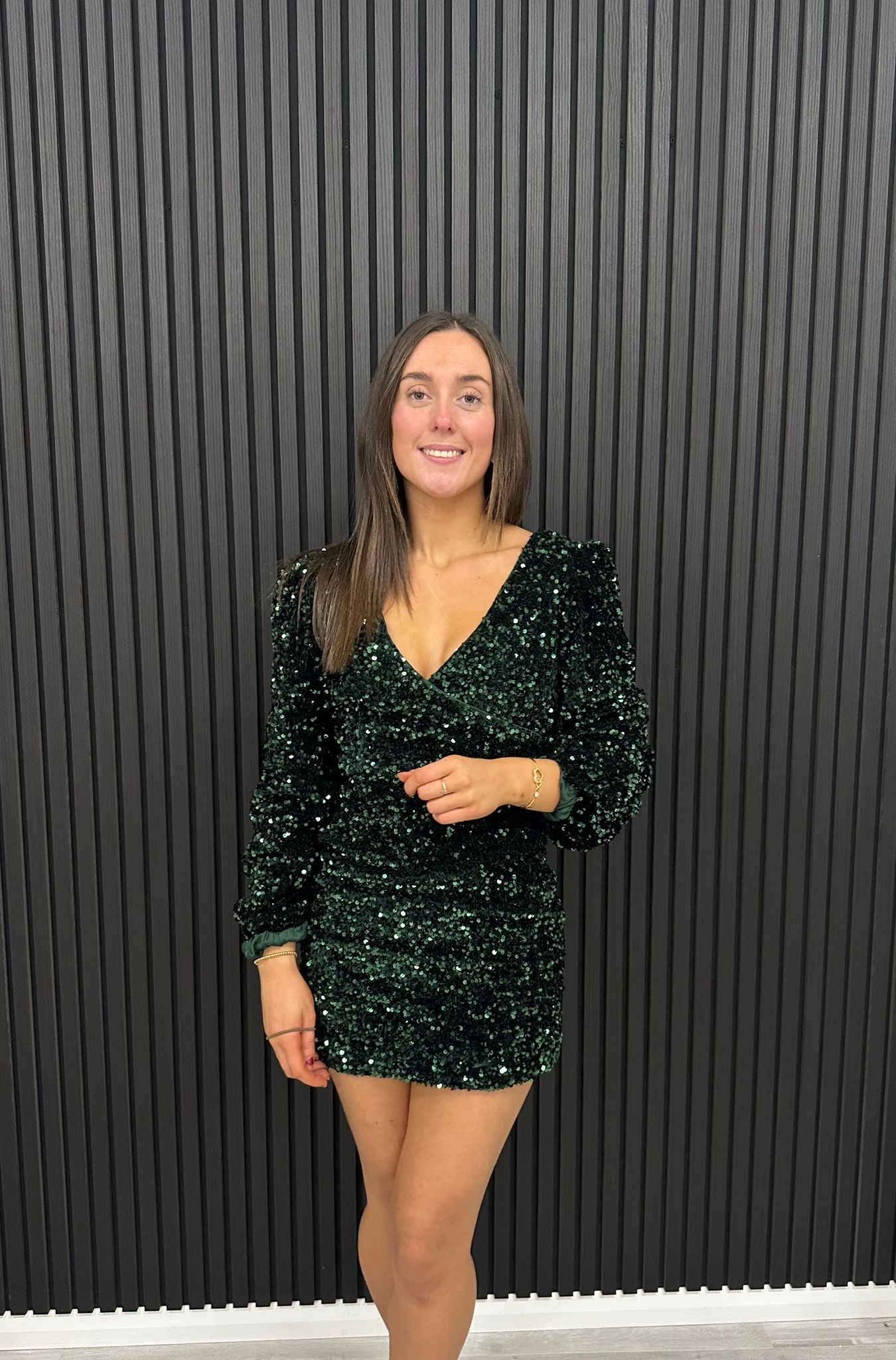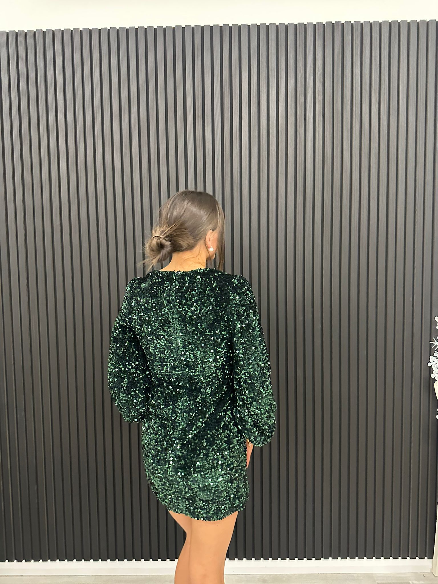 Look stunningly chic in the Marc Angelo Sequin Wrap Dress! Boasting a wrap silhouette, heavy weight sequin fabric and elasticated blouson sleeves, you'll make a statement wherever you go. Perfect for a day or night look, it's a playful mini length that adds a fun and flirty touch to any outfit.