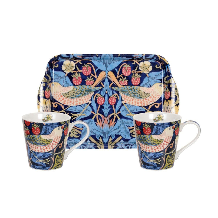 Morris & Co. Strawberry Thief Mug & Tray, Blue