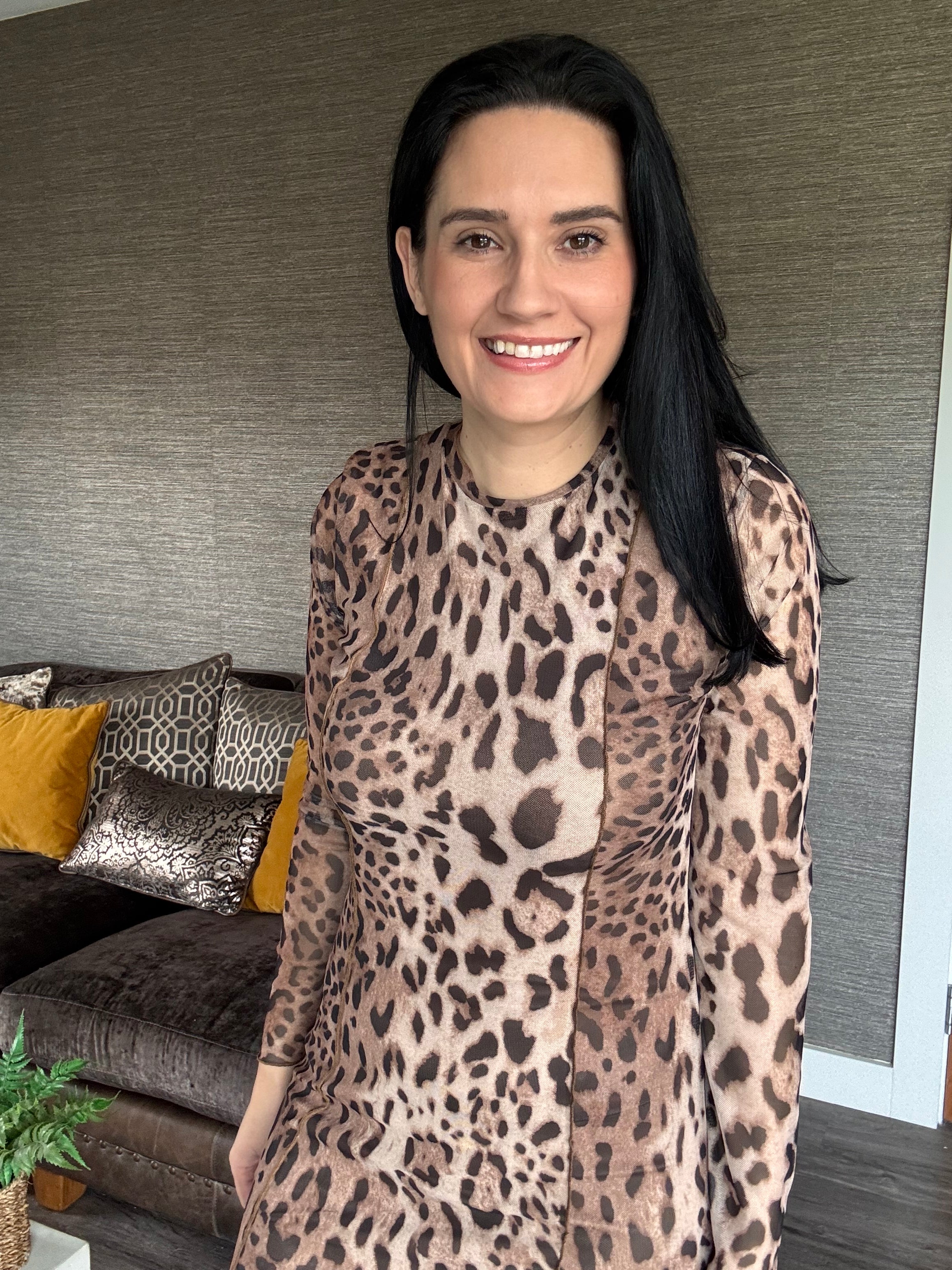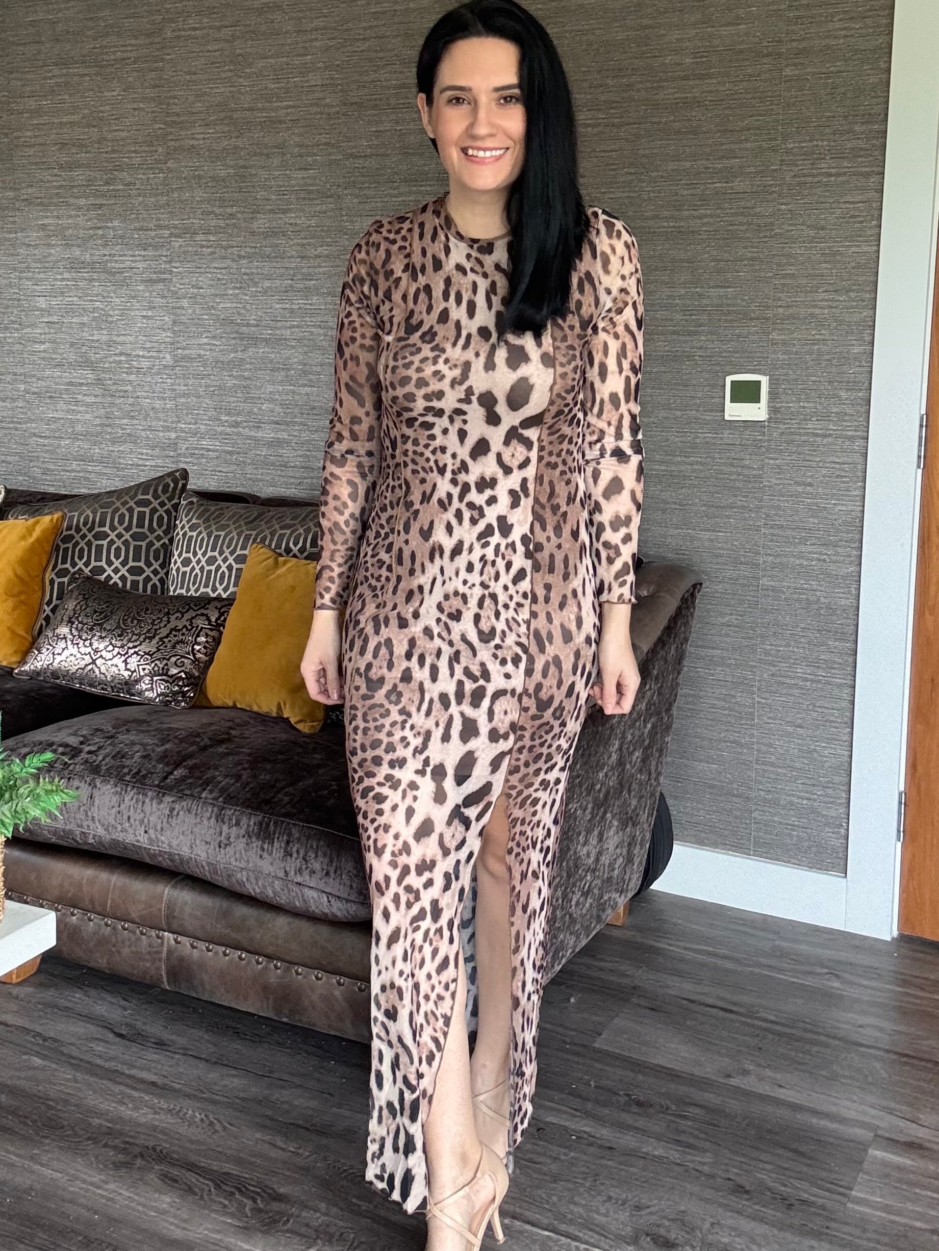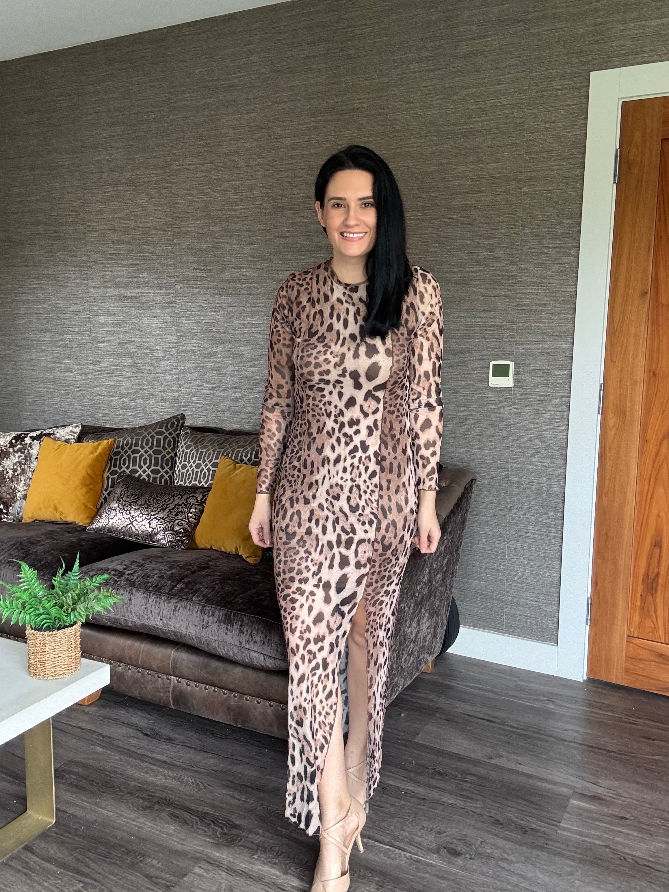 NINNA L/S MESH MIDI DRESS LEOPARD PRINT
