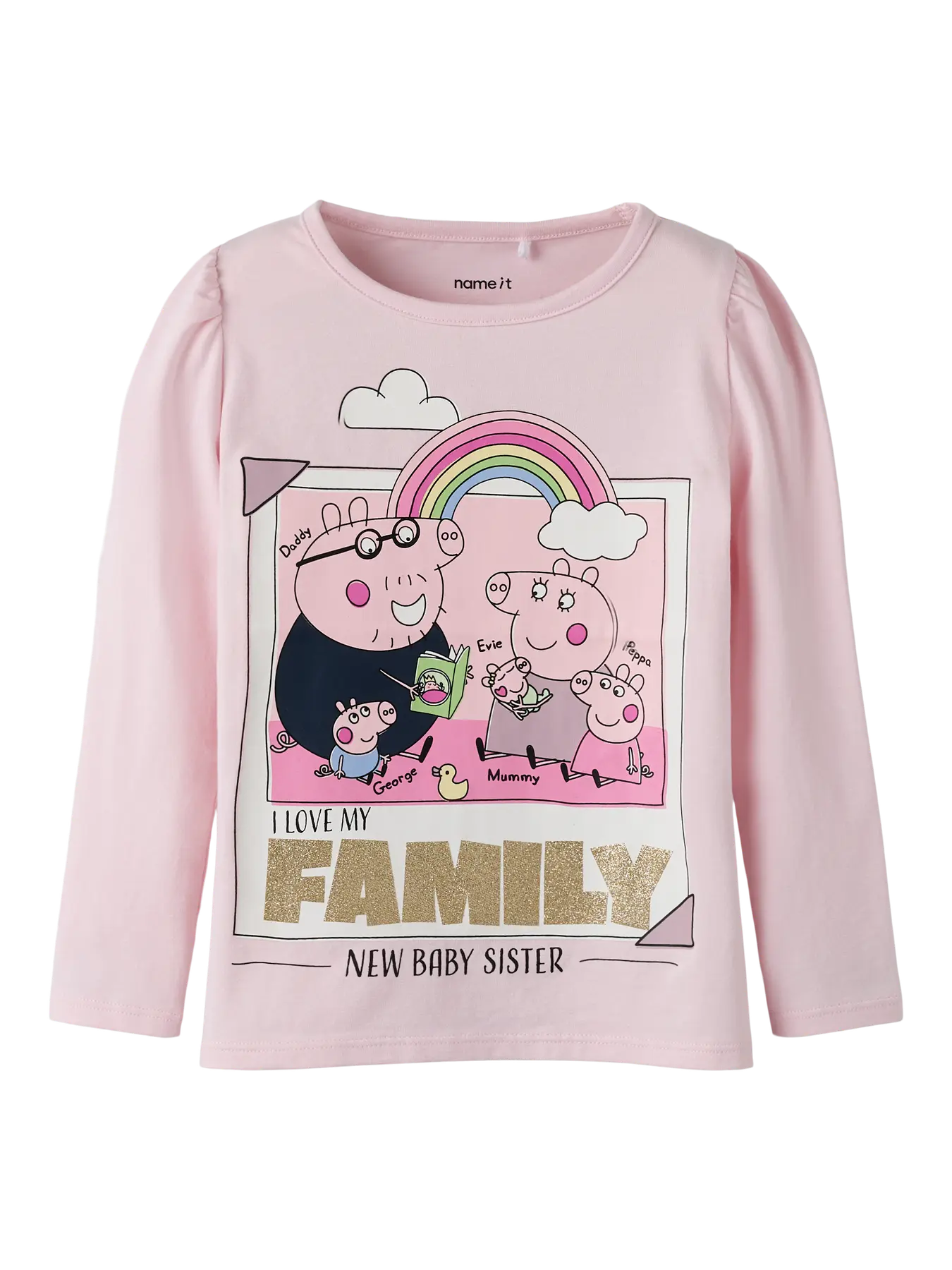 Give your child´s wardrobe an update with cool tops perfect for everyday wear and special occasions. Jersey is a lightweight and stretchy fabric with a soft surface and inside for a comfortable feel and freedom to move. Peppa Pig is a lovable, but slightly bossy little pig. She is four years old and lives with Mummy Pig, Daddy Pig and her little brother George. Peppa likes playing with her best friend Suzy Sheep, visiting Granny and Grandpa Pig and looking after George. Most of all, Peppa loves jumping up and down in muddy puddles, laughing and making loud snorting noises. - Product Type : Top - Neck : Round Neck - Sleeve : Long sleeves - Sleeves : Puff sleeves - Extra details : Glitter detail - Print : Rubber print for a soft feel - Fit : Regular Fit
