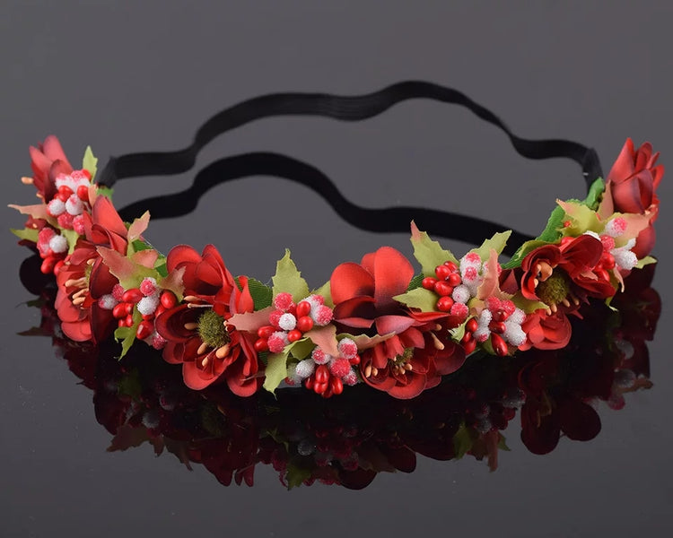 Red Berries Floral Crown and Veil